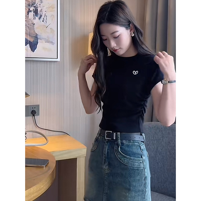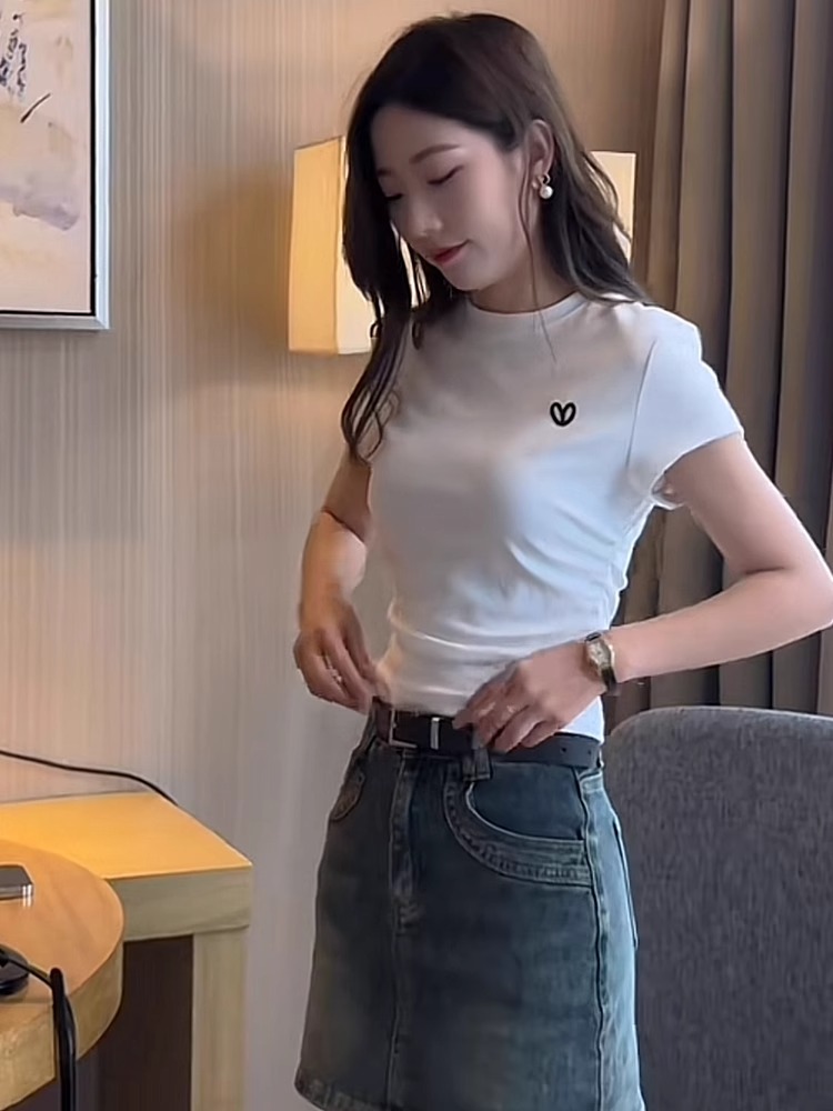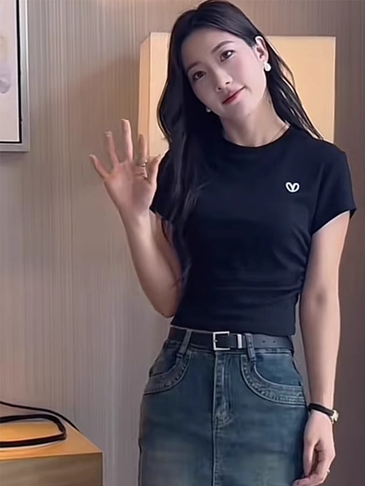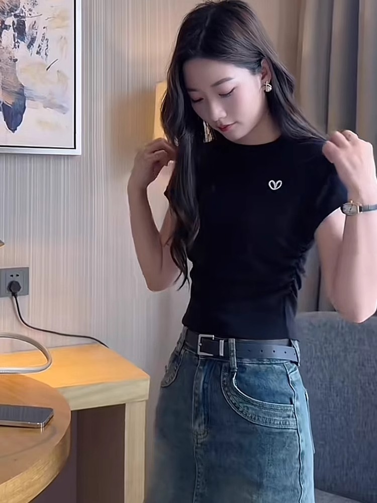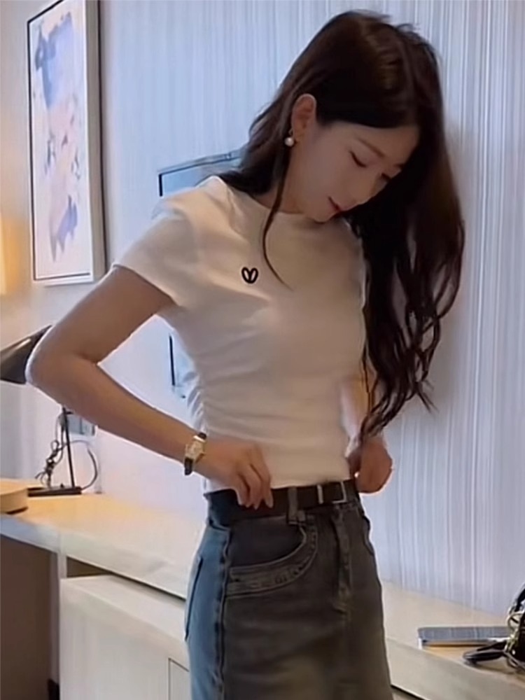 아메리칸 스타일 핫 걸 쇼트 티셔츠 여자 여름 새로운 올매치 반팔 슬림 슬림 레드 화이트 유럽 스타일 탑스토어 가기