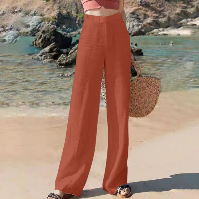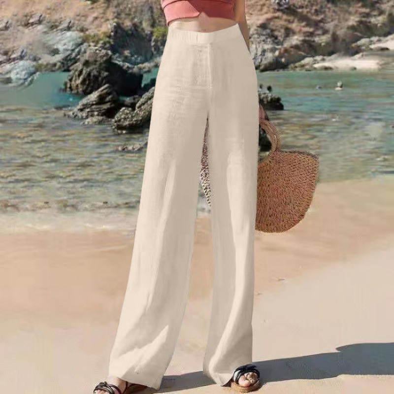 넓은 다리 바지 여름 얇은 캐주얼 바지 여성 한국식 느슨한 면화와 리넨 느슨한 높은 허리 스트레이트 바지