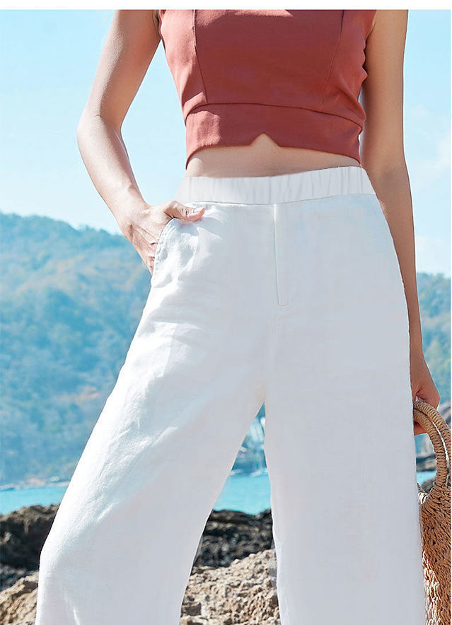 넓은 다리 바지 여름 얇은 캐주얼 바지 여성 한국식 느슨한 면화와 리넨 느슨한 높은 허리 스트레이트 바지스토어 가기