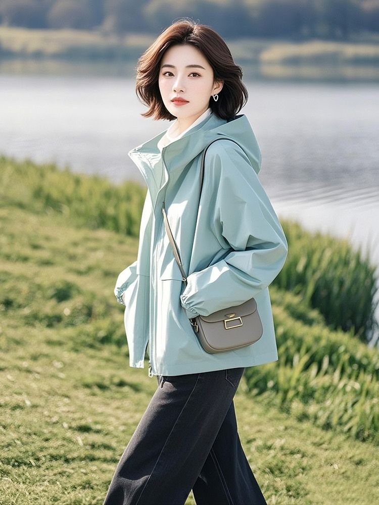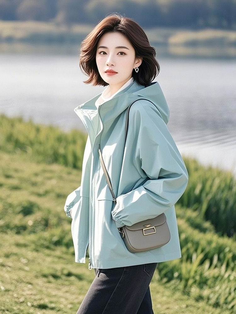 후드 자켓 여자 2025 봄 새로운 한국 스타일 외국 스타일 독특한 올 매치 슬림 룩 캐주얼 자켓 탑 트렌디