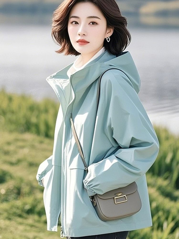 후드 자켓 여자 2025 봄 새로운 한국 스타일 외국 스타일 독특한 올 매치 슬림 룩 캐주얼 자켓 탑 트렌디스토어 가기