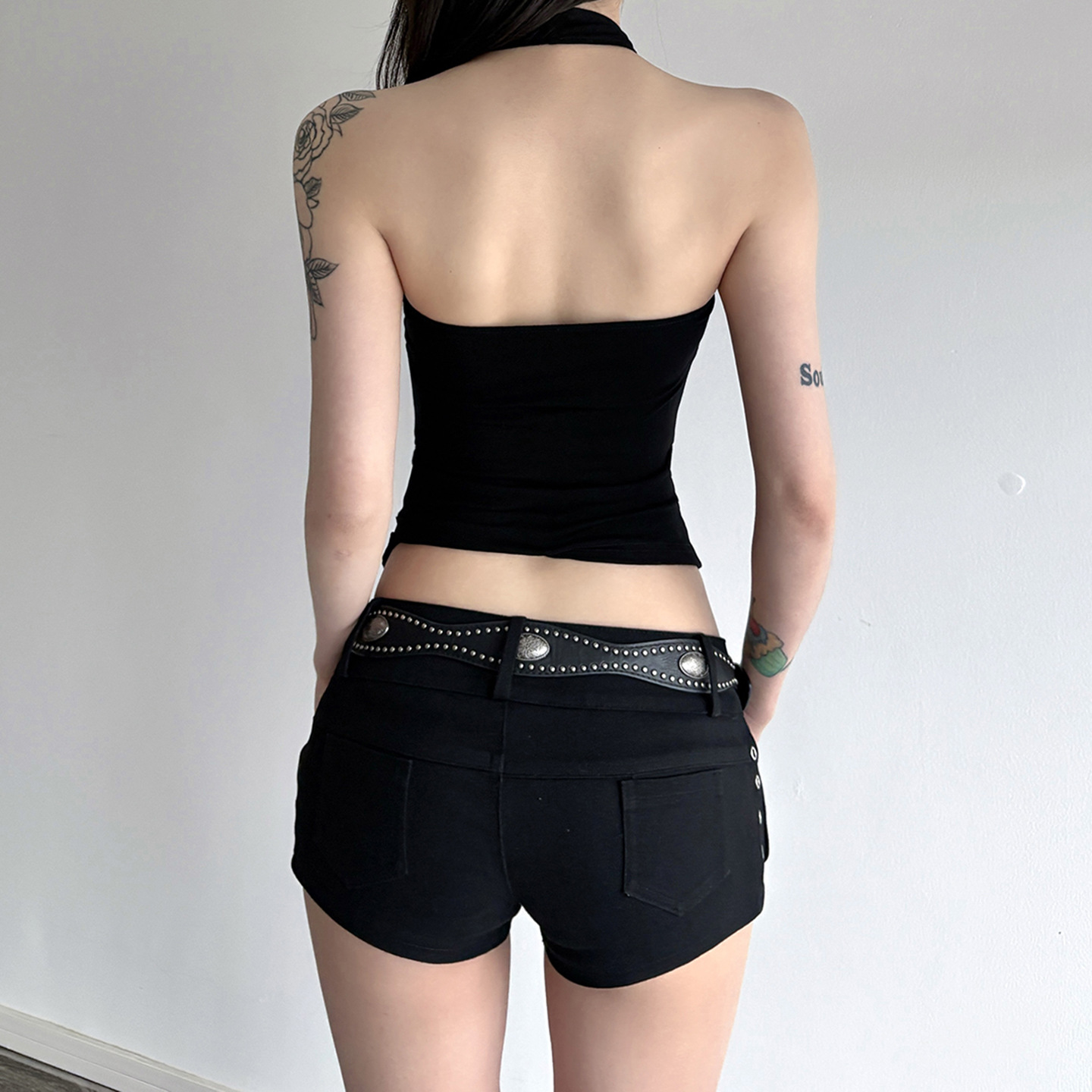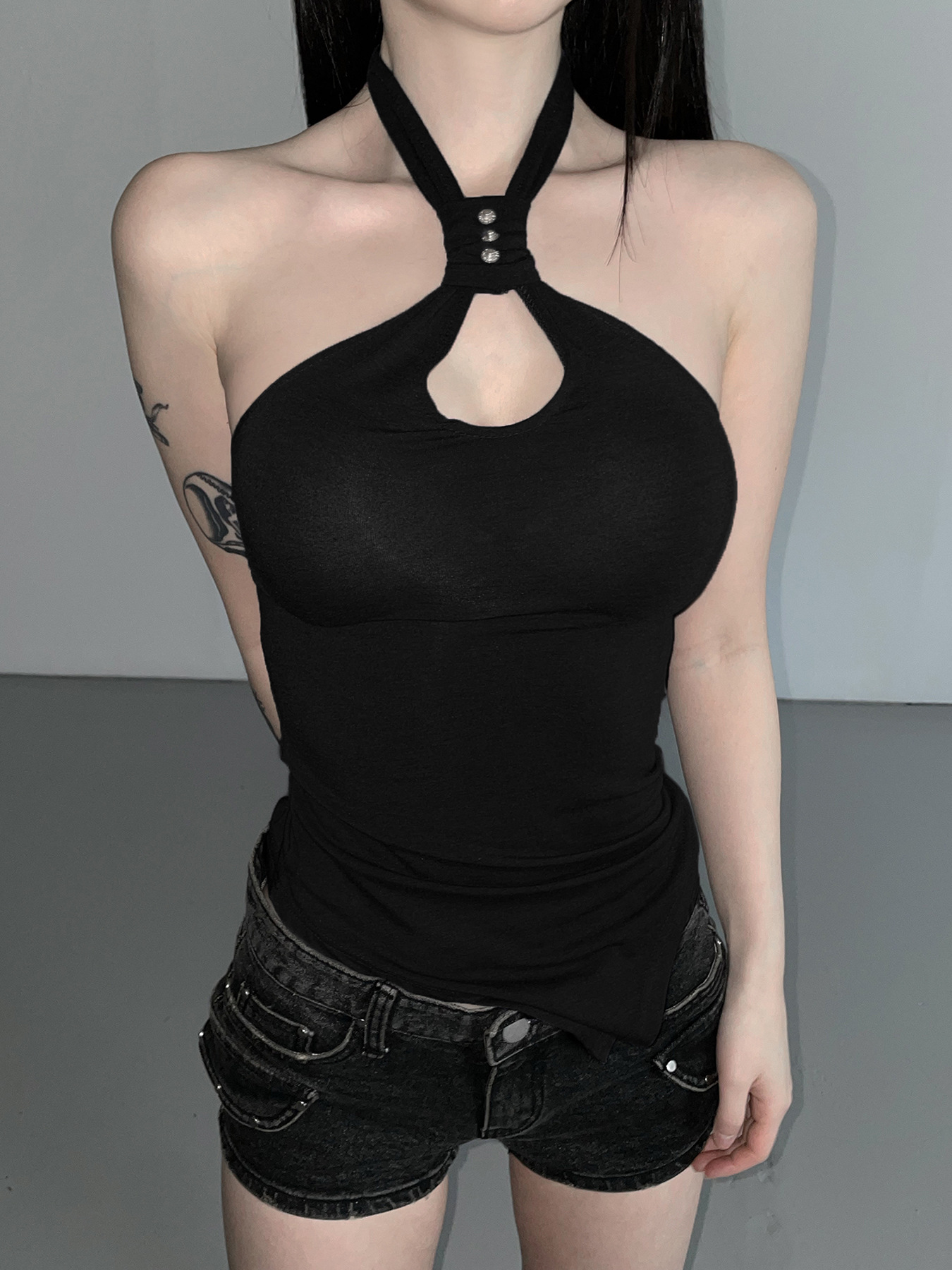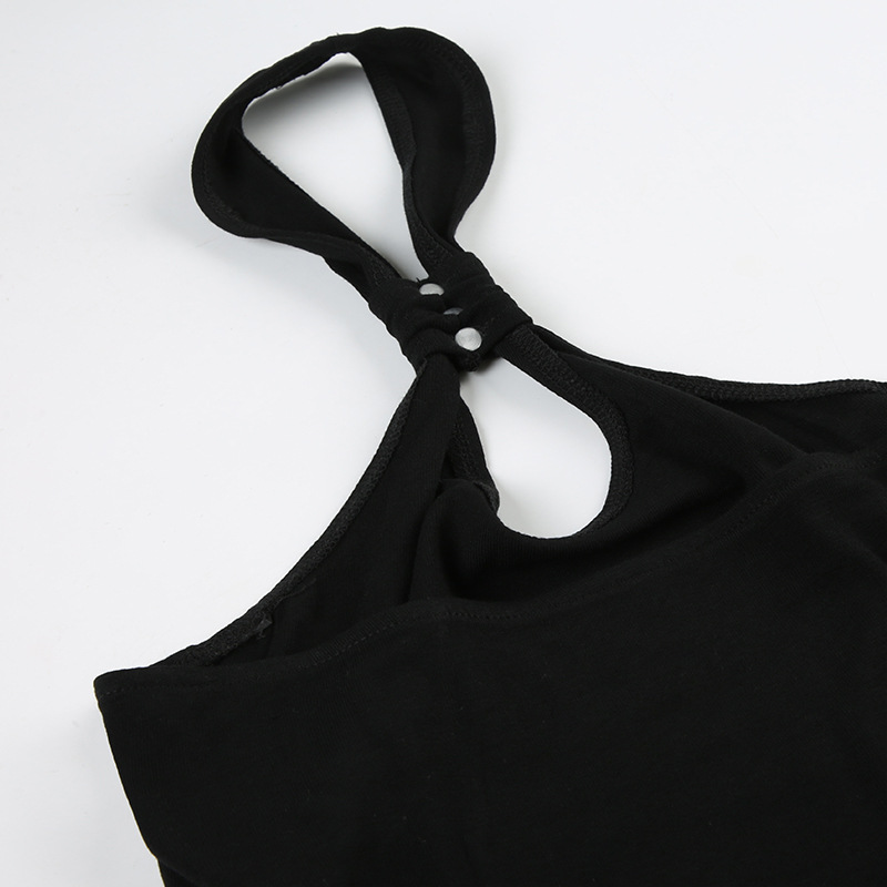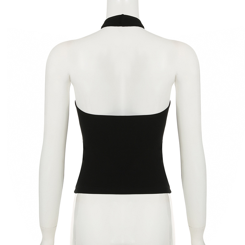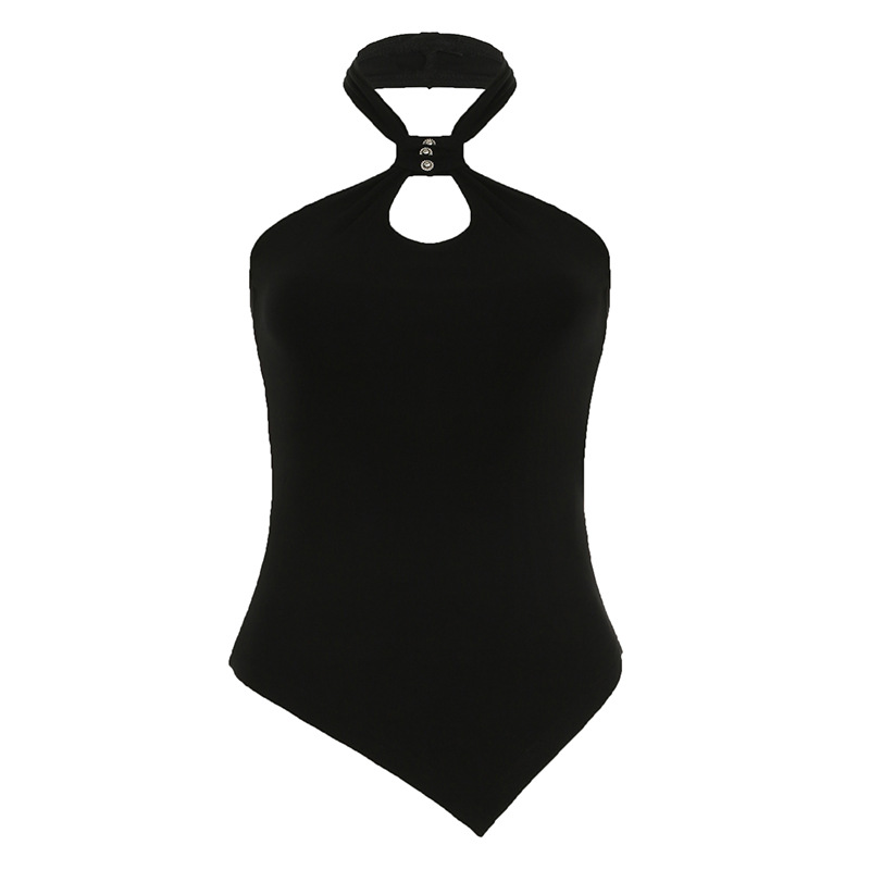 미국 스트리트 걸 스타일 디자인 센스 넥 매달린 불규칙한 카미솔 순수 우아한 여성 올 매치 백리스 탑