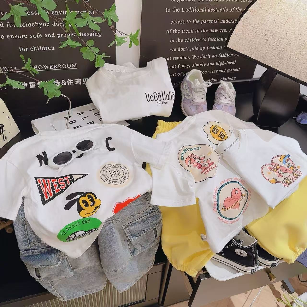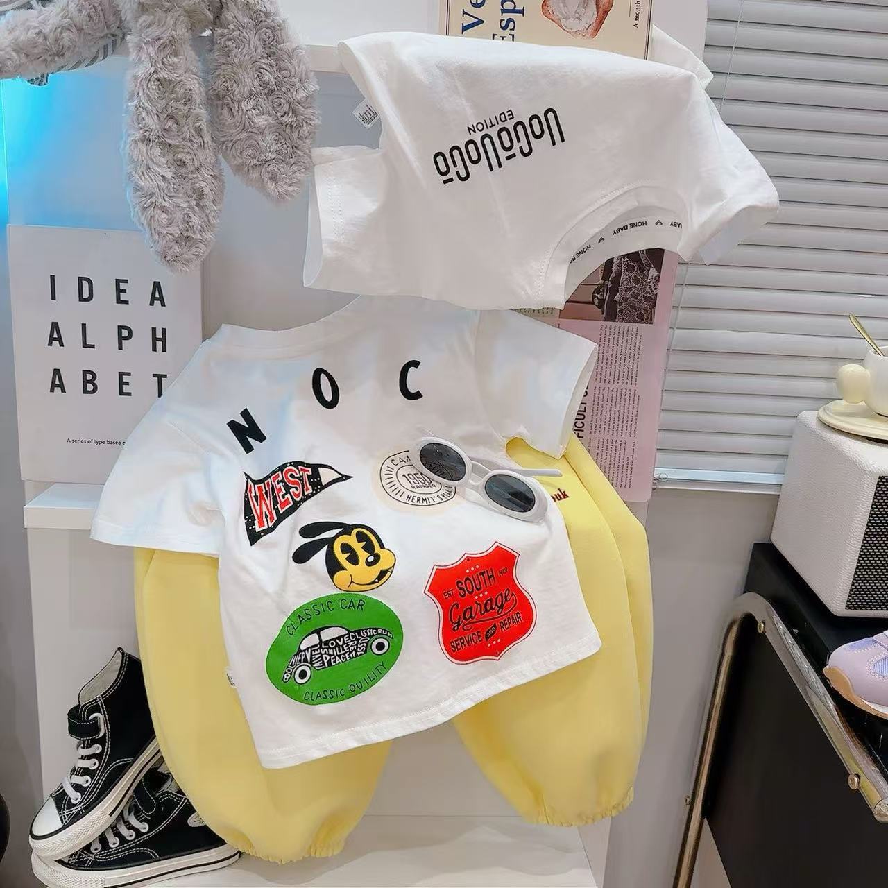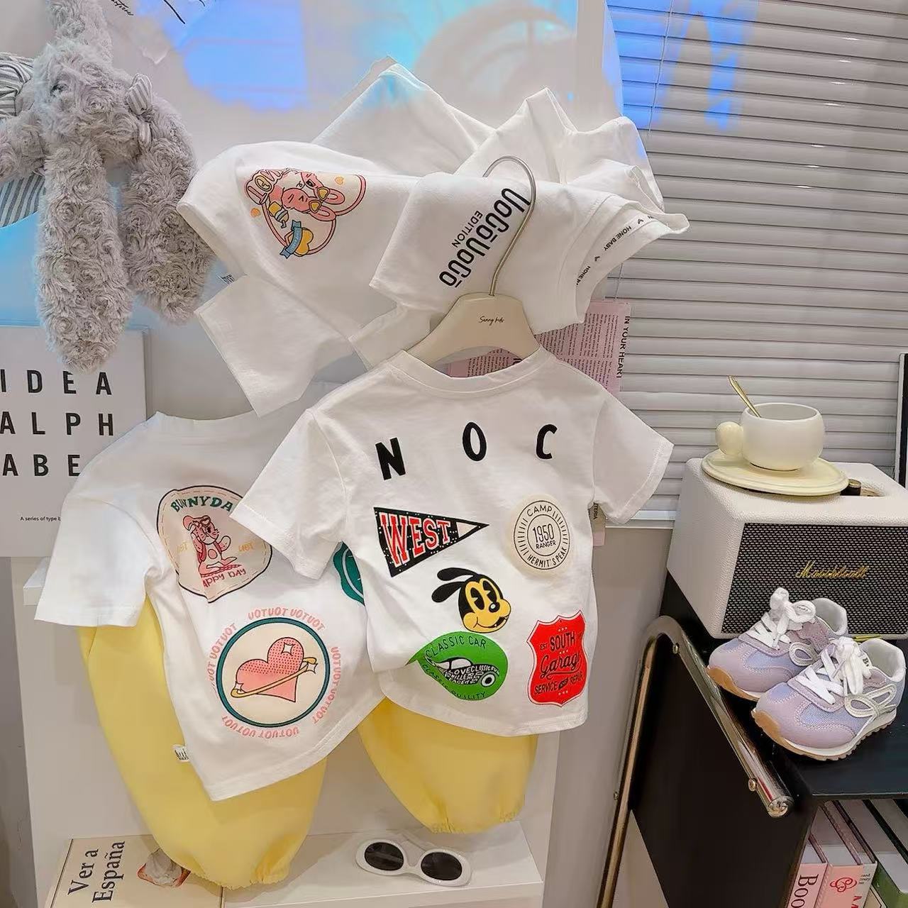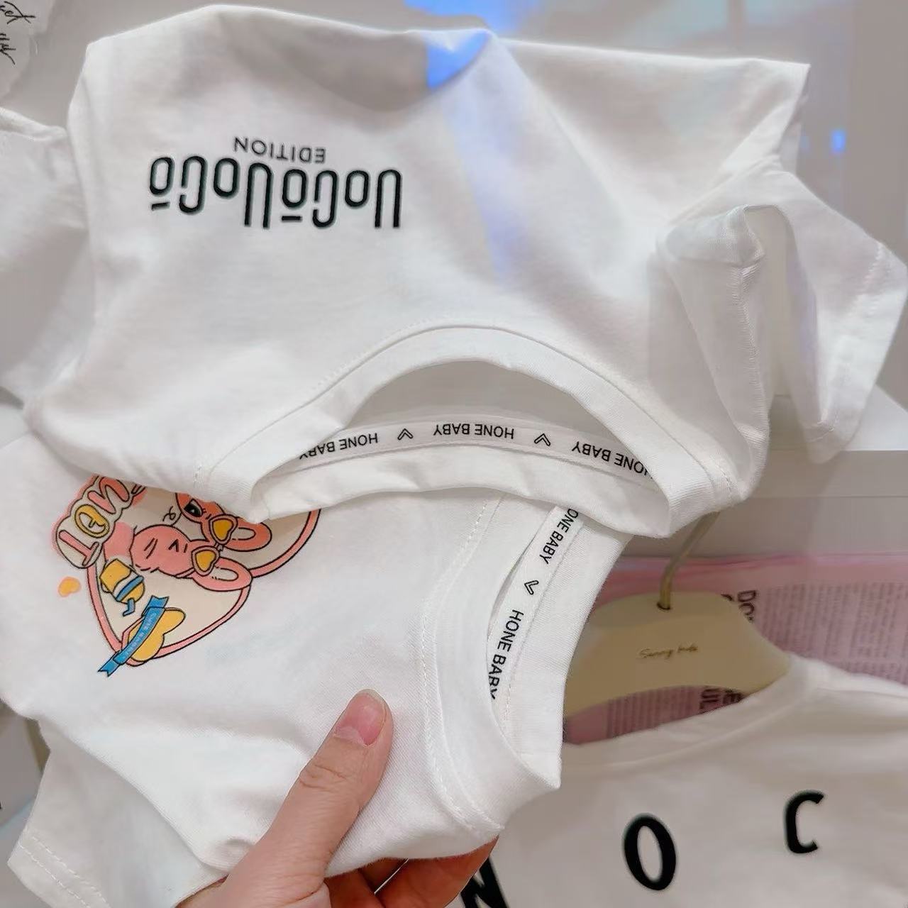 2025 새로운 소년과 소녀 반팔 티셔츠 만화 인쇄 토끼 미키 코튼 탑 편안한 드롭 배송스토어 가기