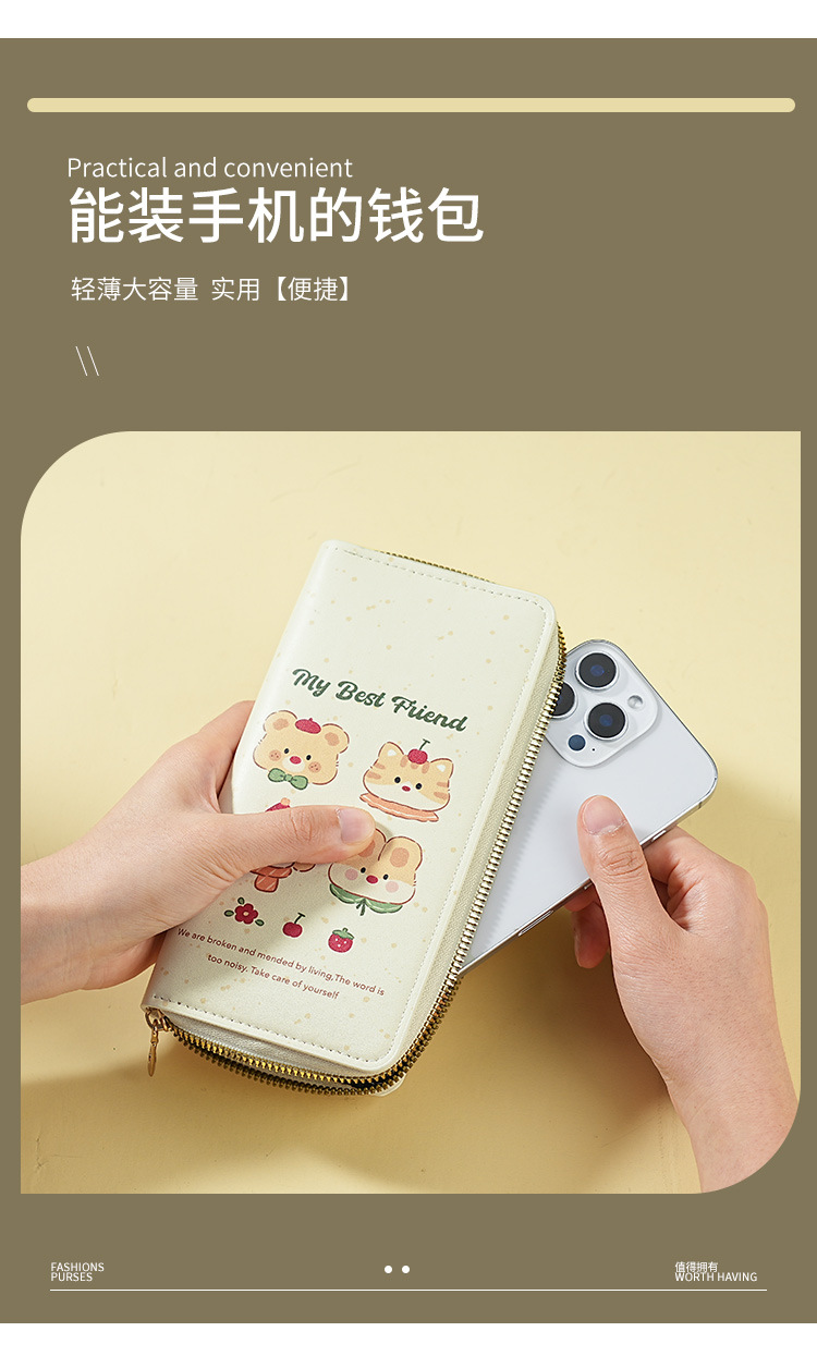 여성용 크로스보더 지갑 긴 만화 귀여운 지갑 대용량 지갑 여성용 지갑 휴대폰 가방 동전 지갑