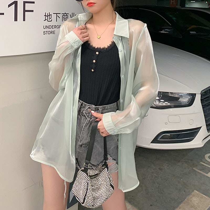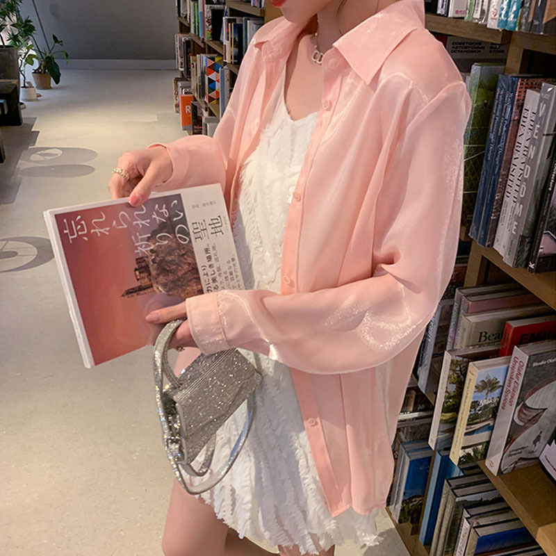 여성용 자외선 차단 셔츠, 여름 얇은 중간 길이, 루즈한 게으른 스타일, 다용도 긴팔 셔츠, 통기성 쉬폰 셔츠, 얇은 재킷스토어 가기