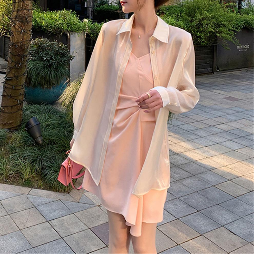 여성용 자외선 차단 셔츠, 여름 얇은 중간 길이, 루즈한 게으른 스타일, 다용도 긴팔 셔츠, 통기성 쉬폰 셔츠, 얇은 재킷