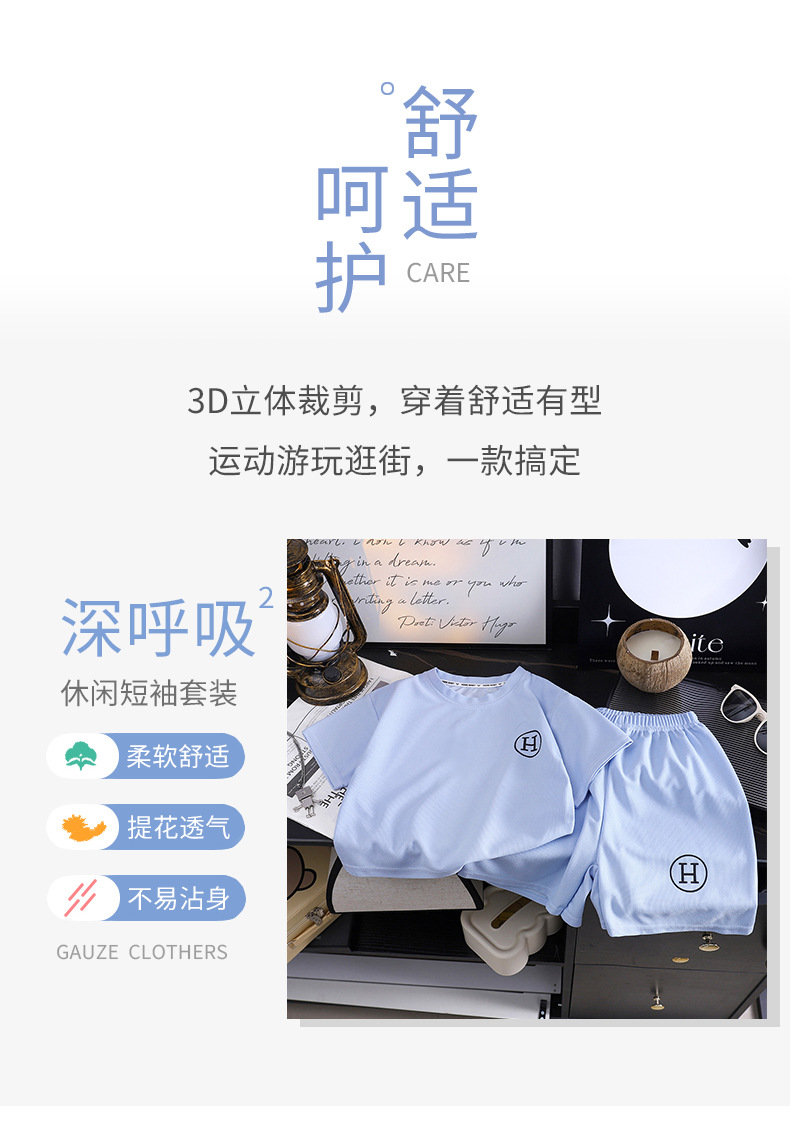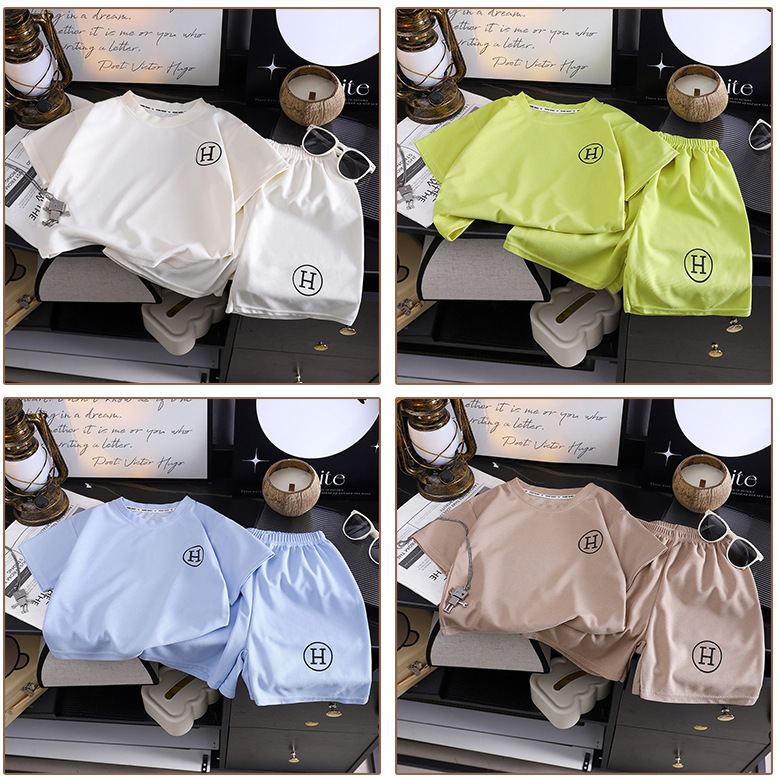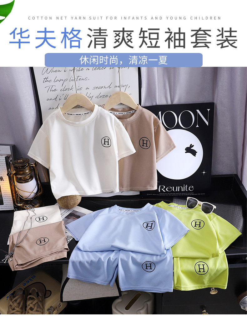 여름 어린이 짧은 소매 반바지 세트 소년 에어컨 옷 캐주얼 투피스 세트 어린이 스포츠 의류 도매스토어 가기