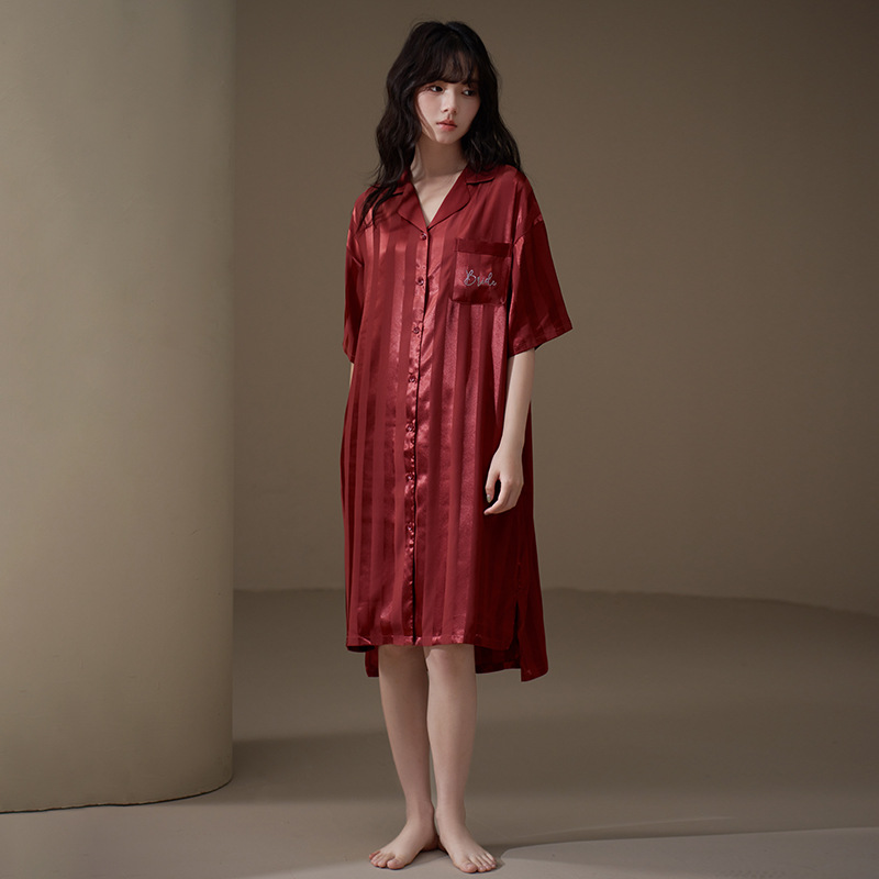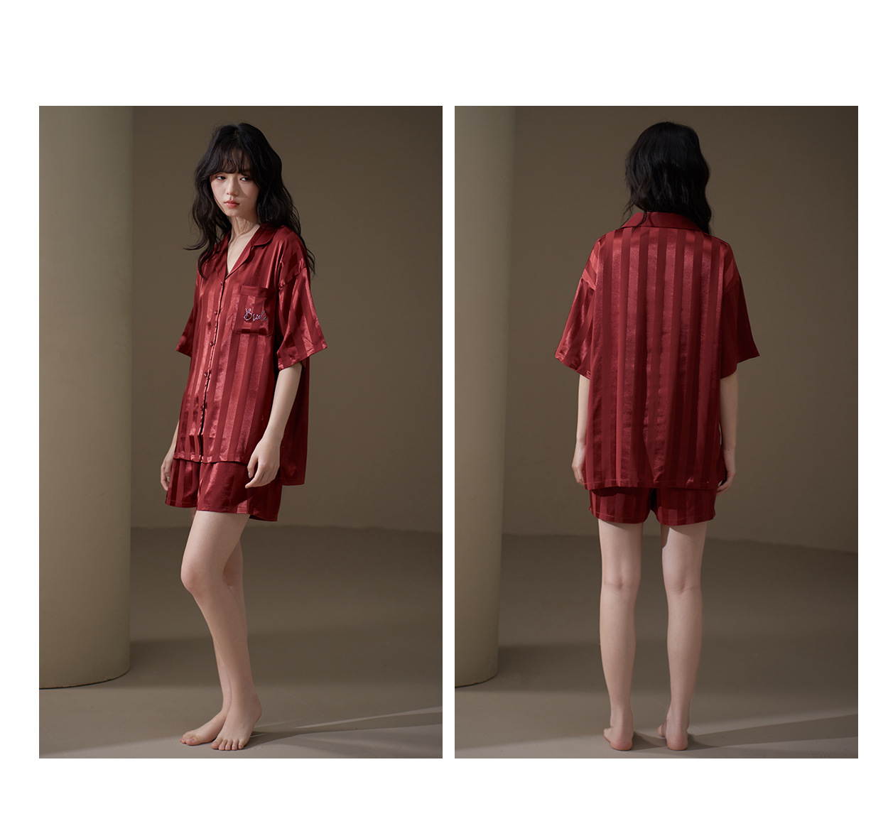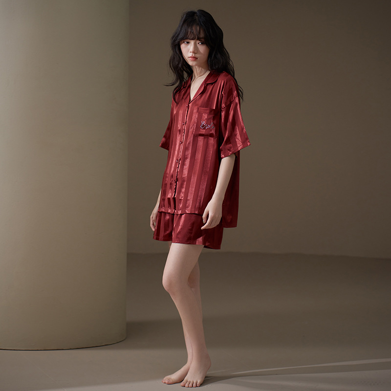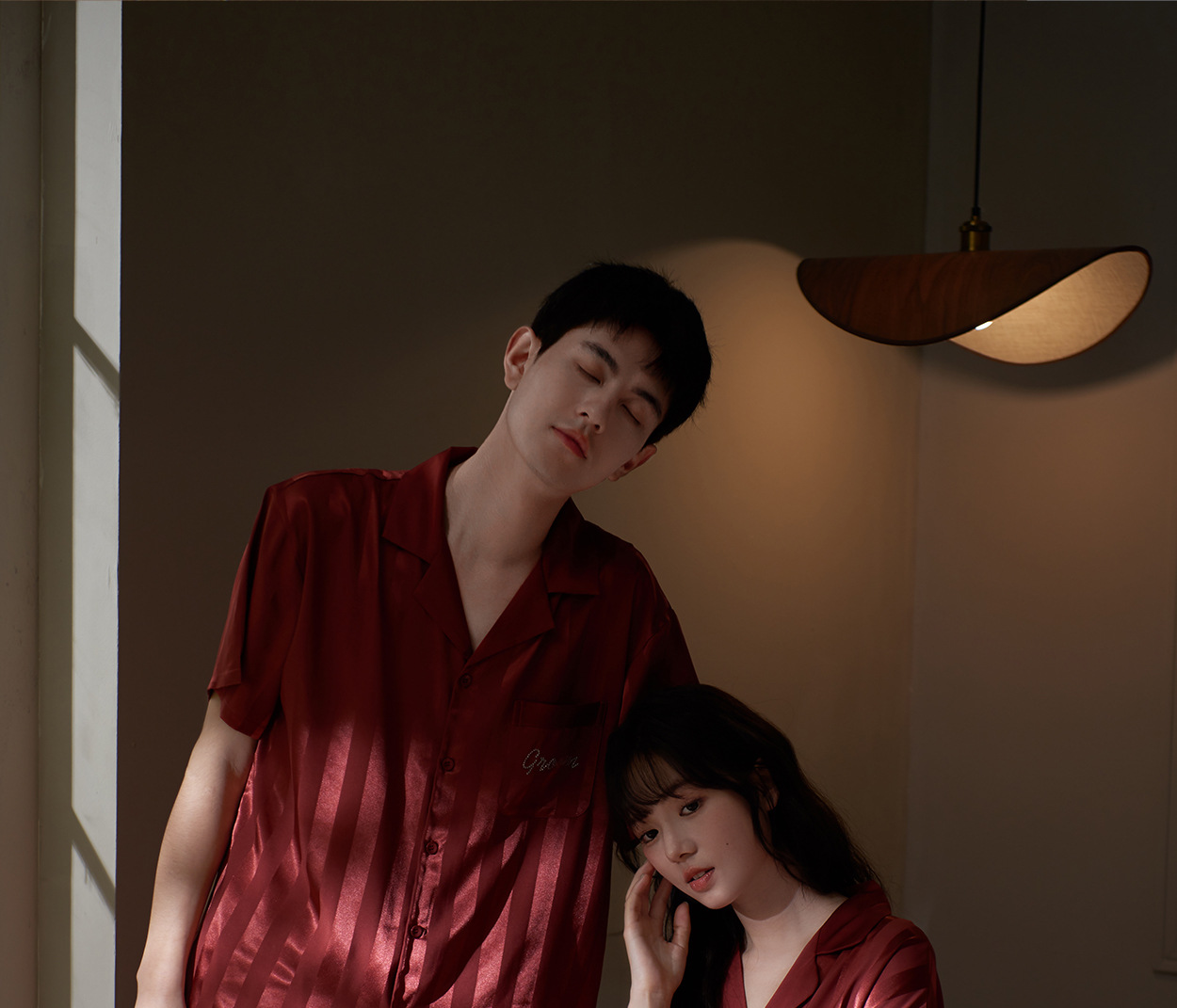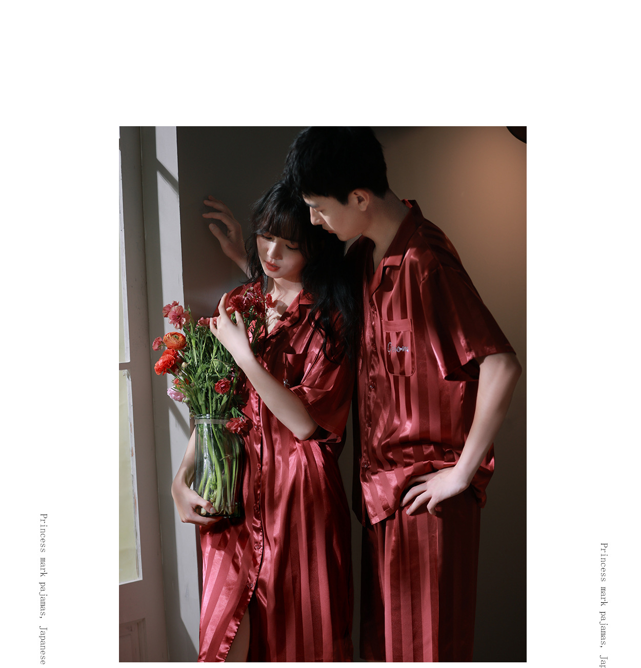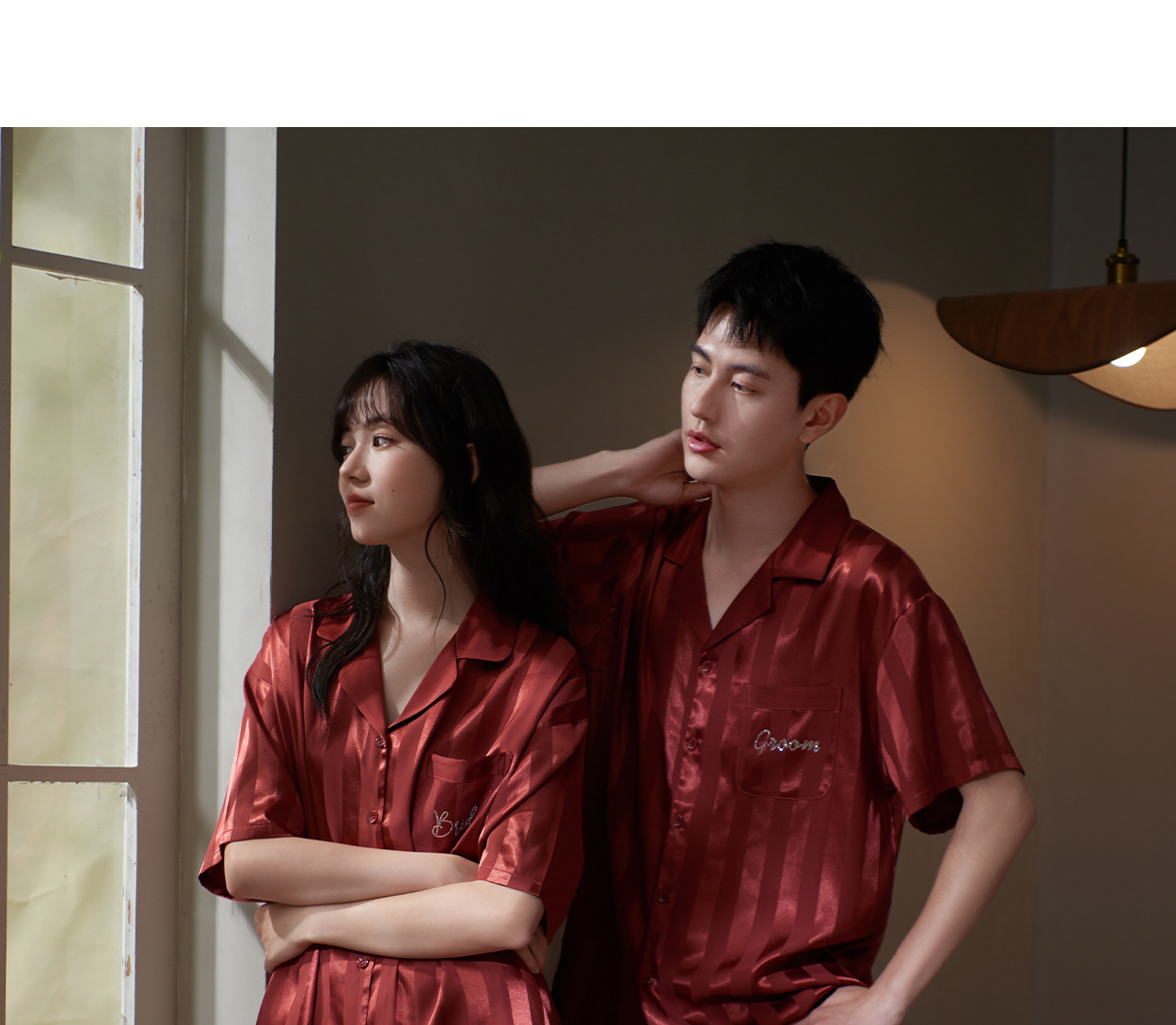 커플 잠옷 여성 여름 시원한 느낌 얼음 실크 잠옷 신혼 웨딩 세트 남성용 고급 레드 홈웨어스토어 가기