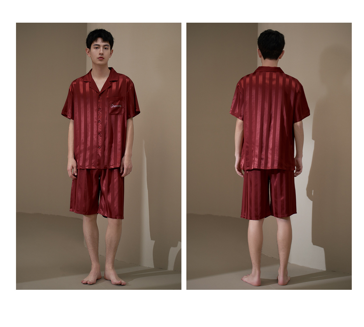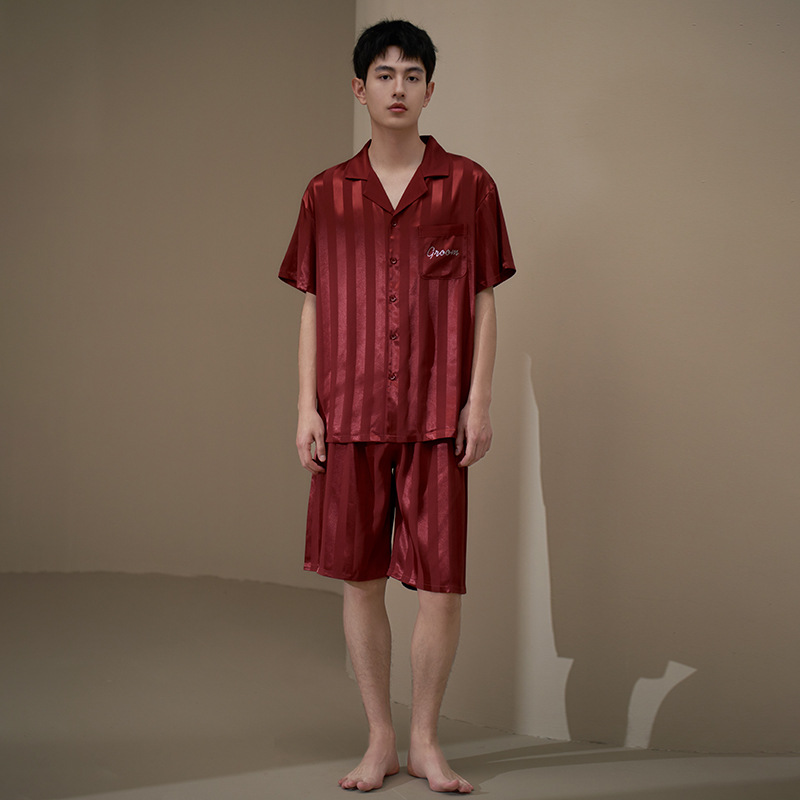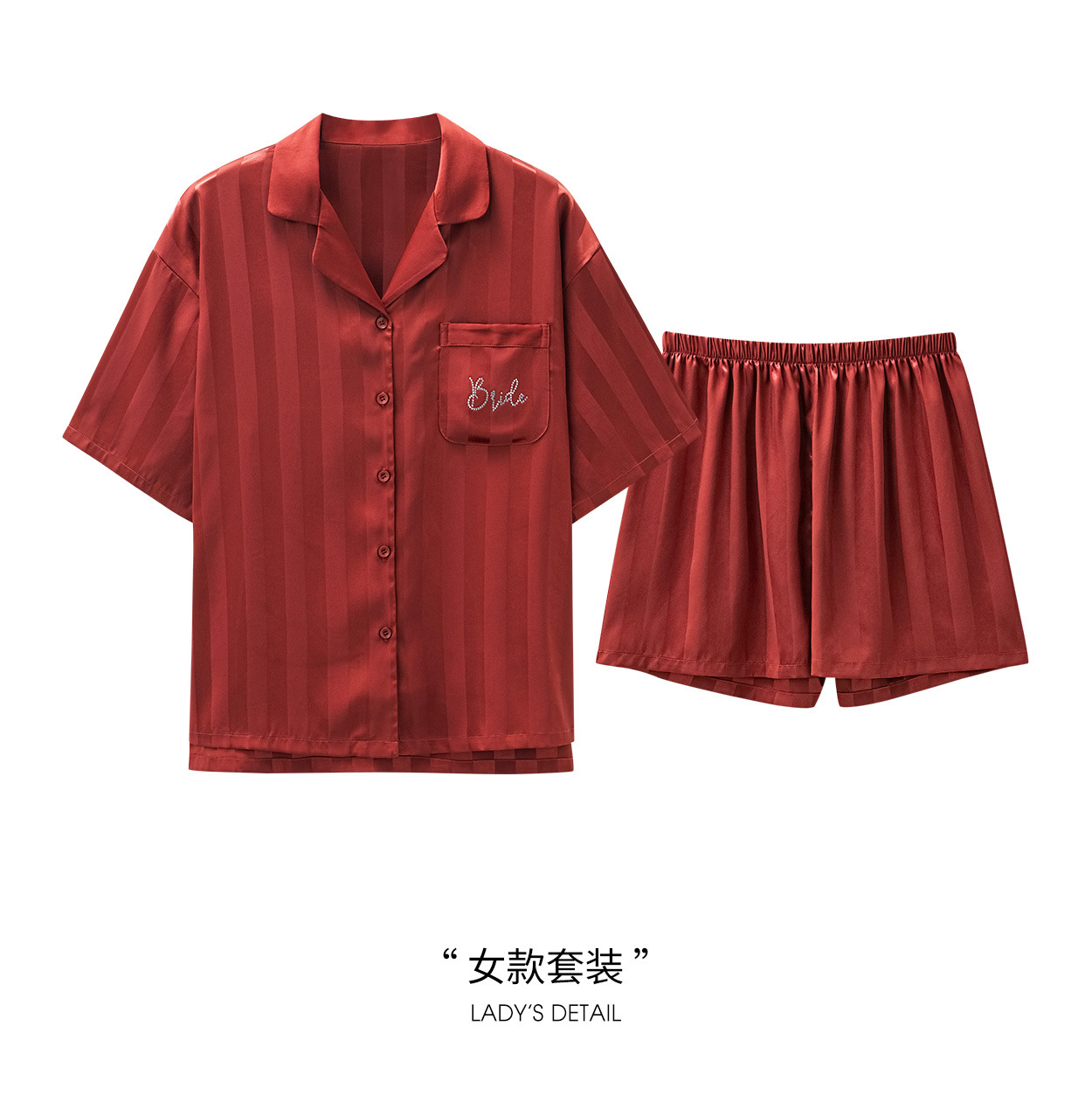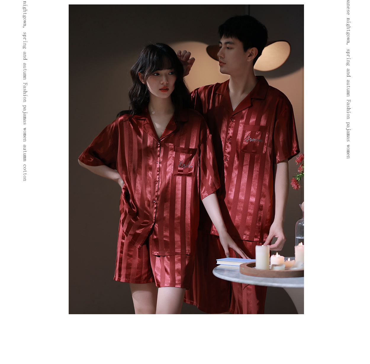 커플 잠옷 여성 여름 시원한 느낌 얼음 실크 잠옷 신혼 웨딩 세트 남성용 고급 레드 홈웨어