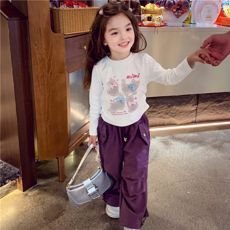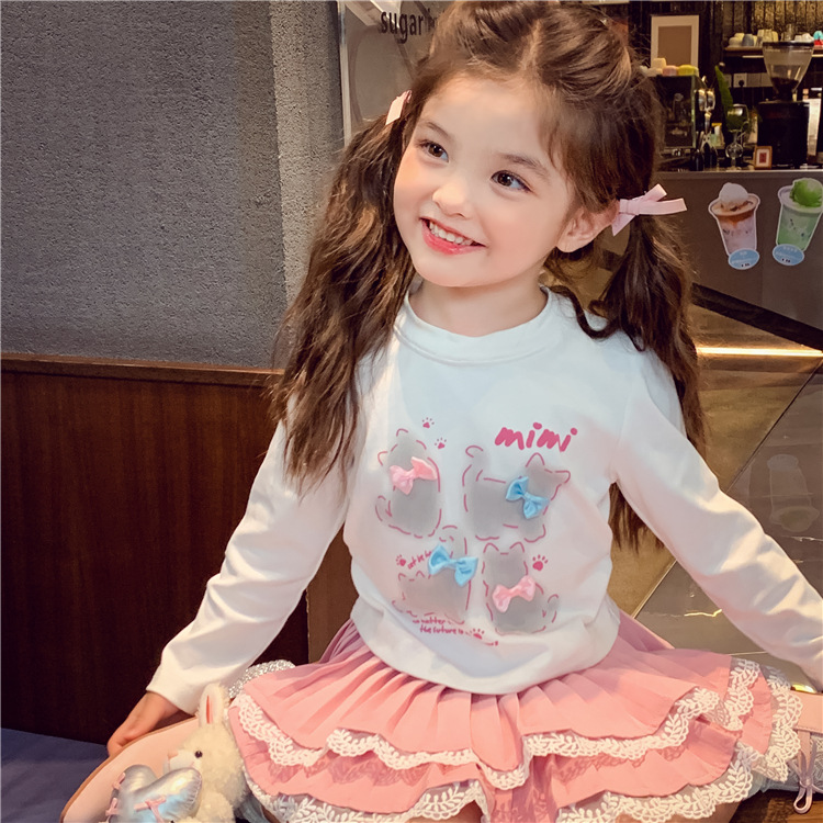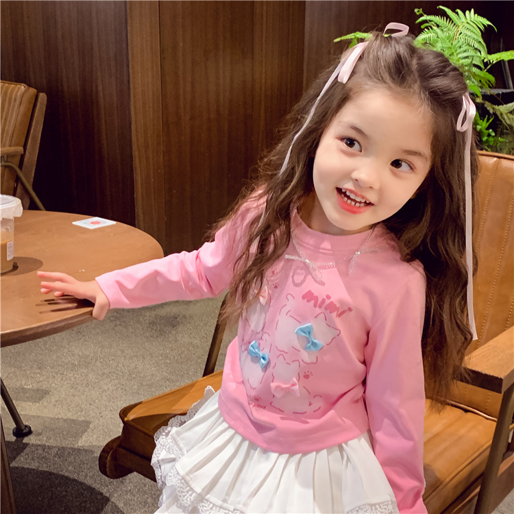 어린이 가을 의류 새로운 어린 소녀 긴 소매 소녀 밑바닥 셔츠 봄 가을 셔츠 안에 만화 인쇄 헤어 세대