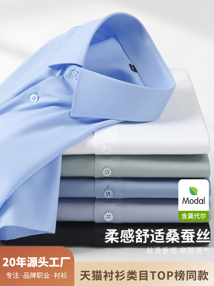 [아이스센스 모달] 반팔 셔츠 남자 여름 비다림질 탄력사업 남자 흰 셔츠 통근 툴링