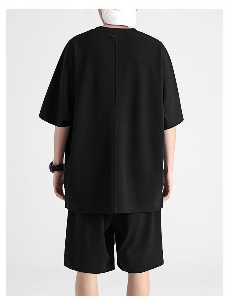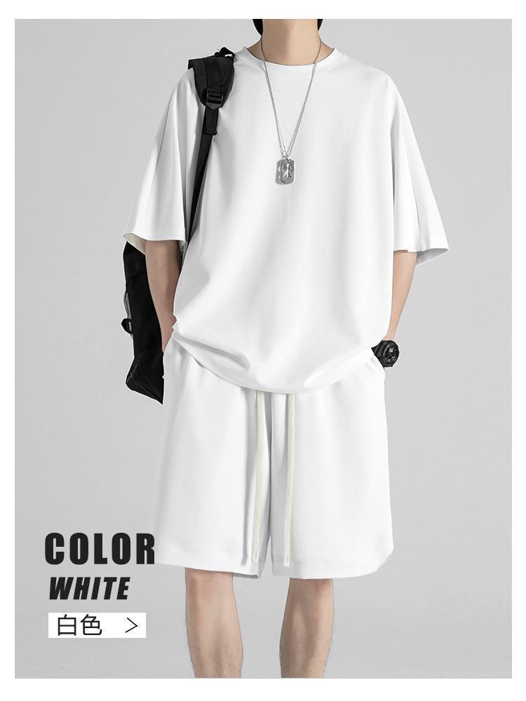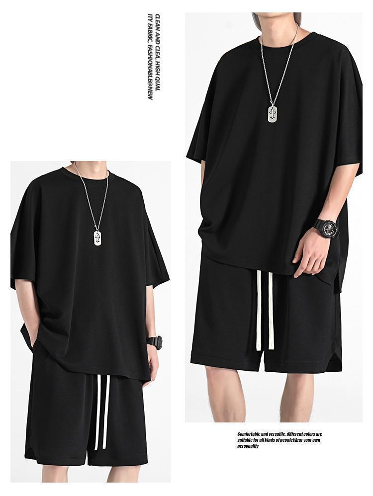 캐주얼 세트 남성 여름 아이스 실크 얇은 스포츠 느슨한 남성 의류 세트 잘 생긴 빠른 건조 반바지 옷