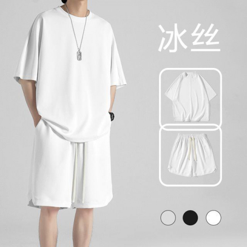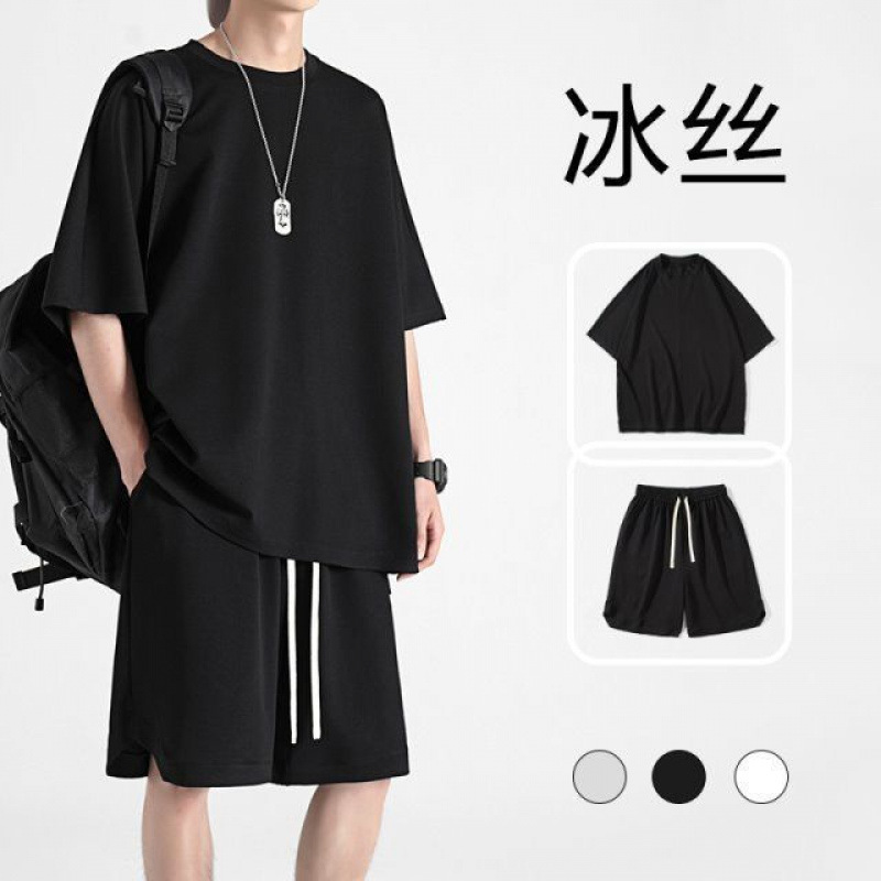 캐주얼 세트 남성 여름 아이스 실크 얇은 스포츠 느슨한 남성 의류 세트 잘 생긴 빠른 건조 반바지 옷스토어 가기