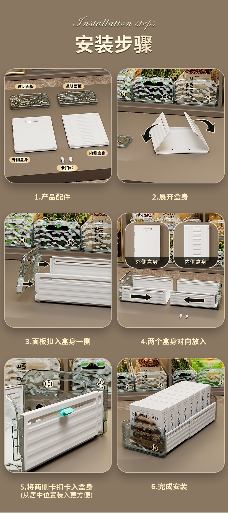 개폐식 캐비닛 저장 상자 서랍 유형 주방 주최자 상자 데스크탑 스낵 식료품 상자 깊은 캐비닛 오른쪽 각도 저장 상자
