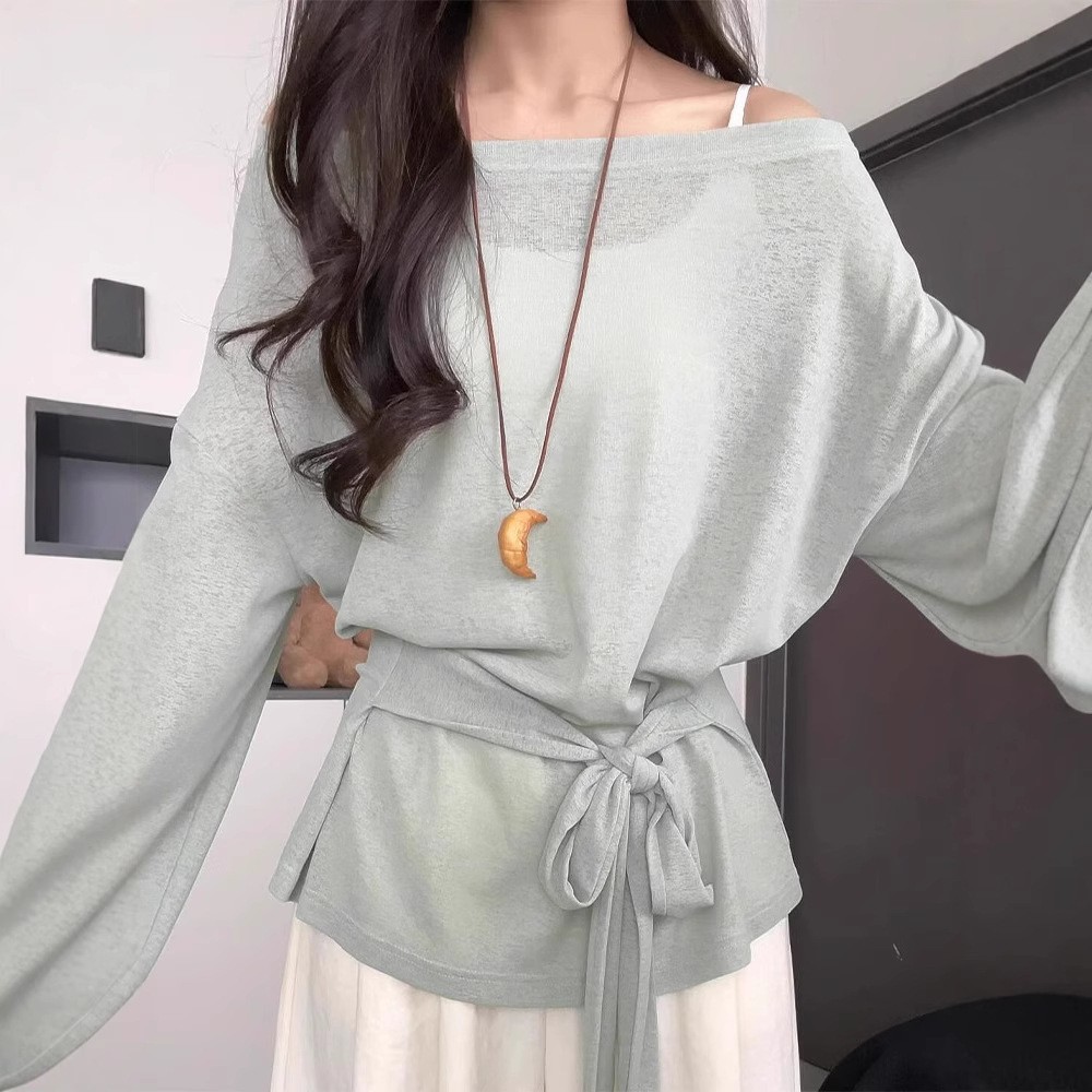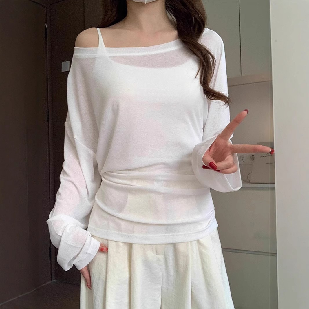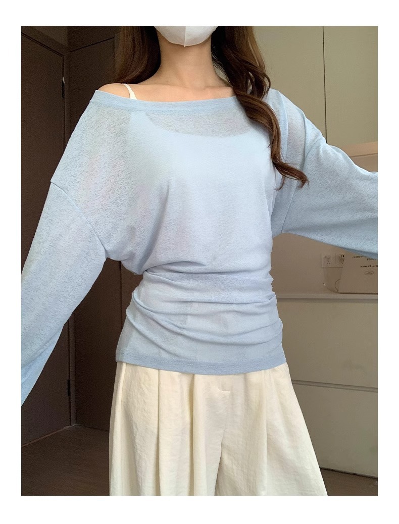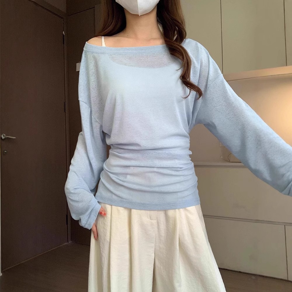 민트 맘보 그린 아이스 실크 툴레 선 스크린 블라우스 여성용 여름 아우터웨어 마이크로 투명 에어컨 티셔츠 타이트 웨이스트 숄더 탑스토어 가기