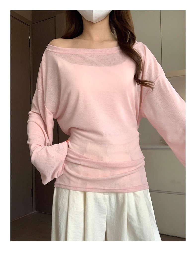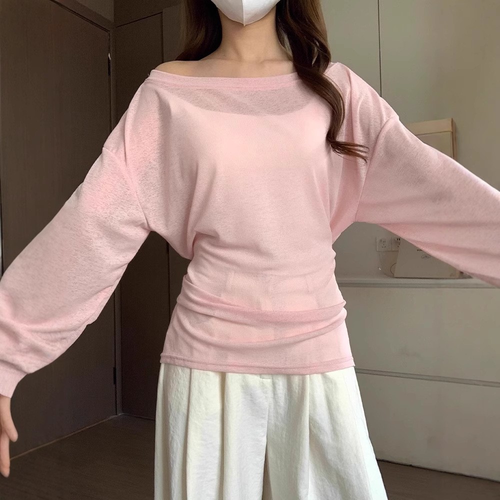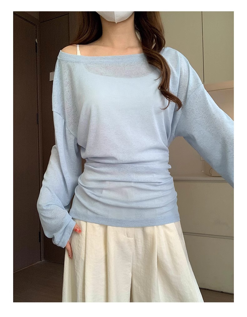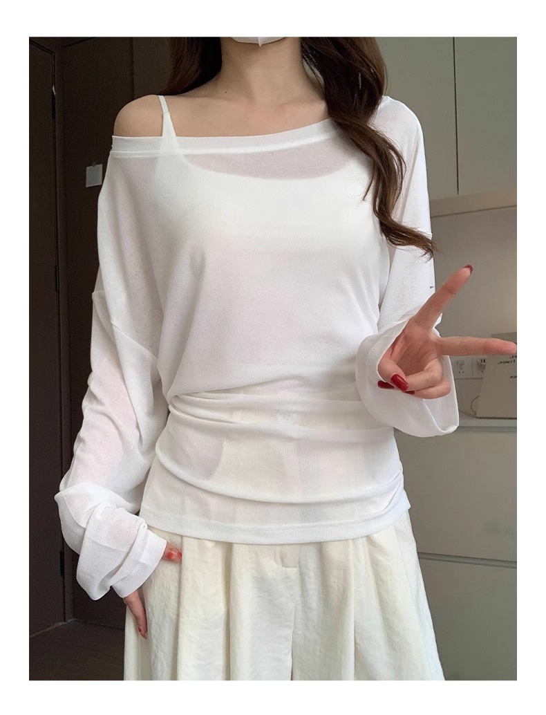 민트 맘보 그린 아이스 실크 툴레 선 스크린 블라우스 여성용 여름 아우터웨어 마이크로 투명 에어컨 티셔츠 타이트 웨이스트 숄더 탑스토어 가기