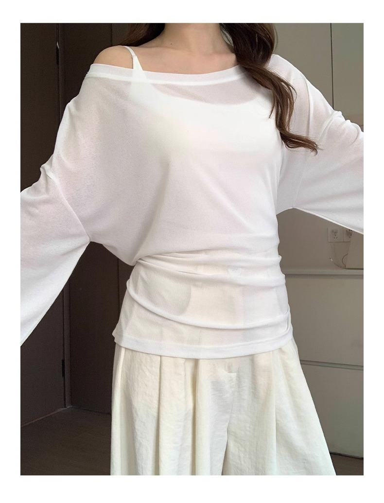 민트 맘보 그린 아이스 실크 툴레 선 스크린 블라우스 여성용 여름 아우터웨어 마이크로 투명 에어컨 티셔츠 타이트 웨이스트 숄더 탑