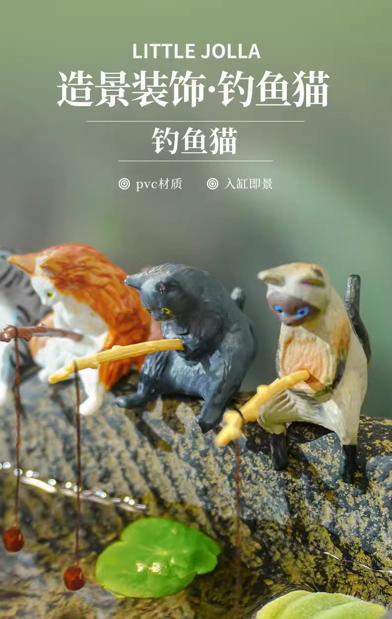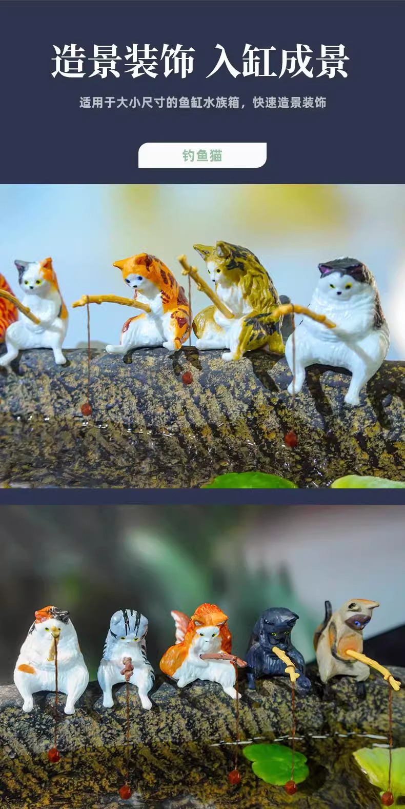 새로운 낚시 고양이 장식품, 수조 조경, 고양이 인터넷 연예인 데스크탑 자동차 레저 새끼 고양이 낚시 고양이