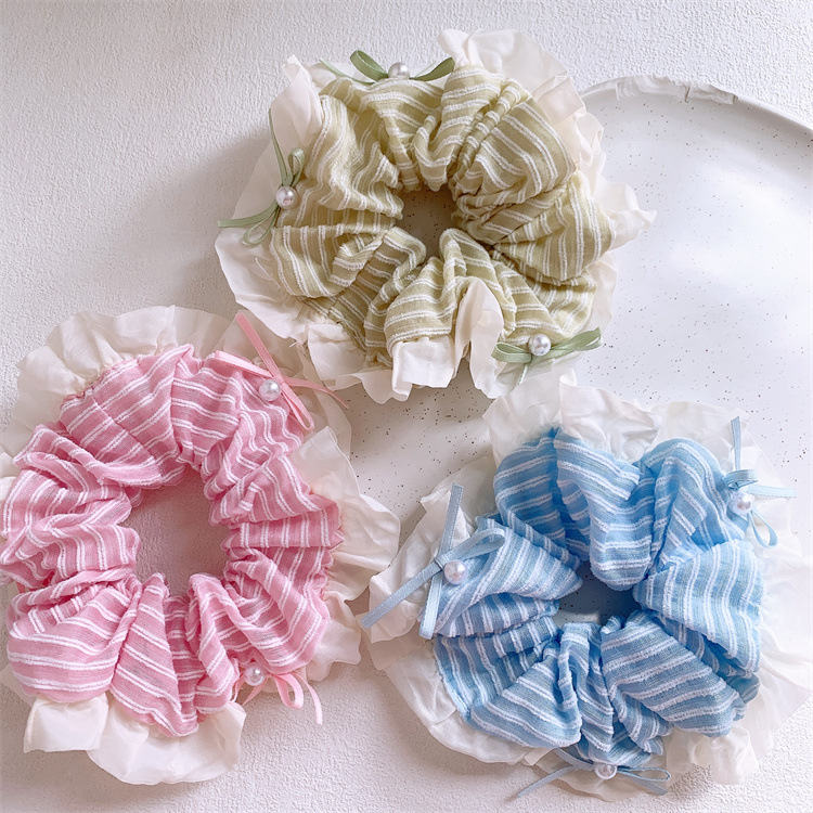발레 스타일 빈티지 활 줄무늬 그릇 머리 반지 달콤한 소녀의 폰다 고무 텐트 헤어 로프 학생 헤어 로프 헤어 액세서리스토어 가기