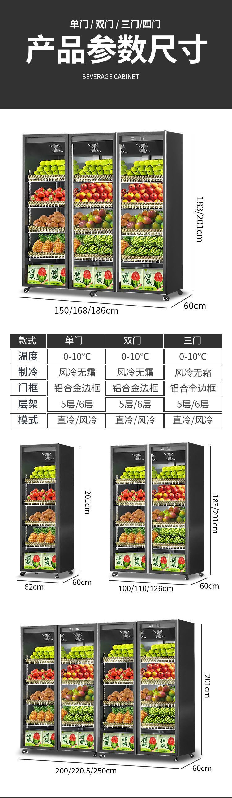 • 3도어 공냉식 1860*600*2010-3색조명