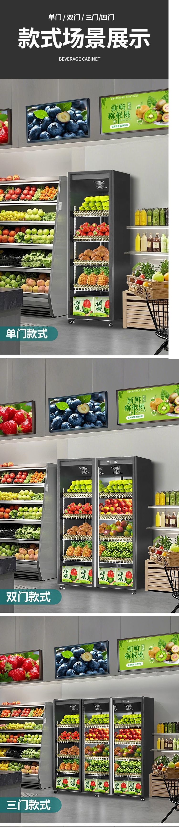 내구성이 뛰어난 과일 보존 캐비닛, 야채 냉장 디스플레이 캐비닛, 슈퍼마켓 윈드 커튼, 인터넷 연예인 꽃, 상업용 수직 냉동고스토어 가기