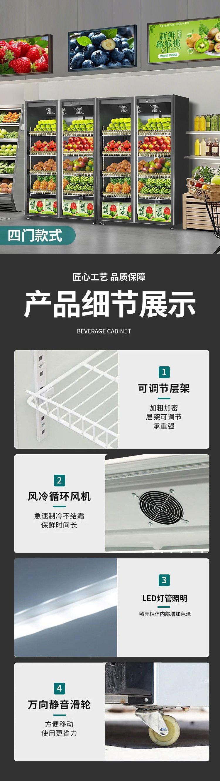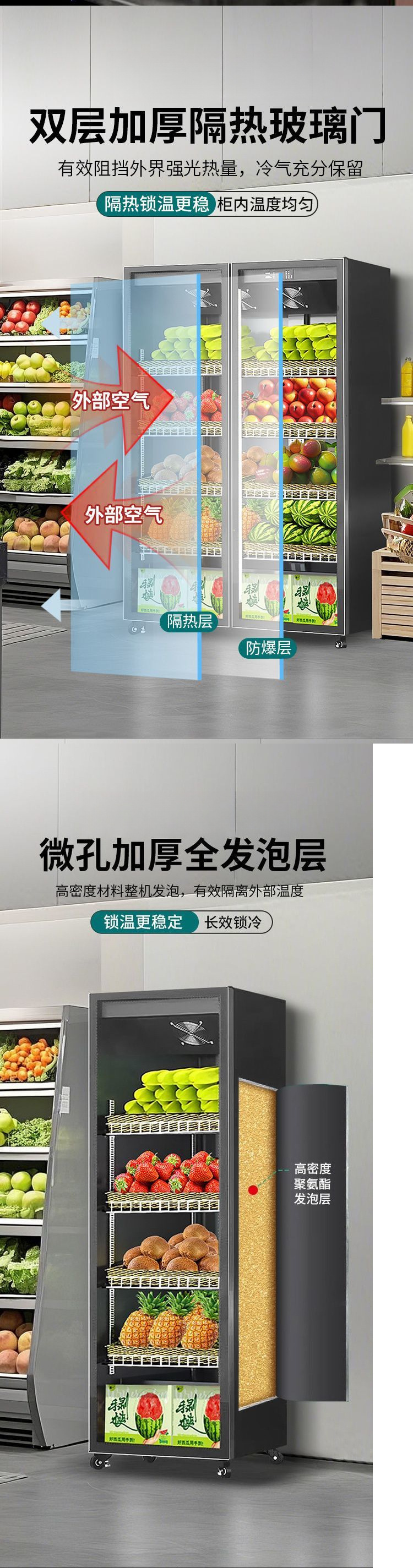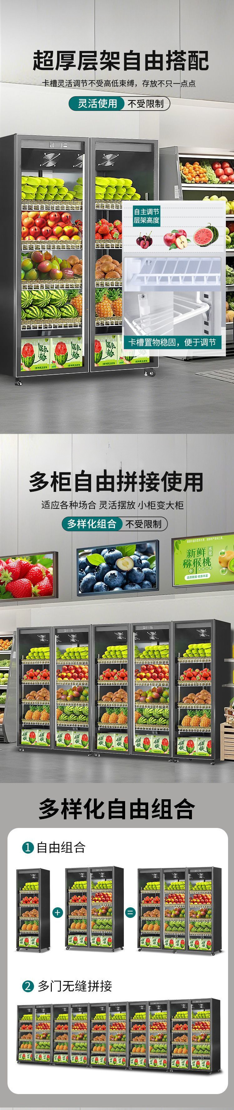 내구성이 뛰어난 과일 보존 캐비닛, 야채 냉장 디스플레이 캐비닛, 슈퍼마켓 윈드 커튼, 인터넷 연예인 꽃, 상업용 수직 냉동고