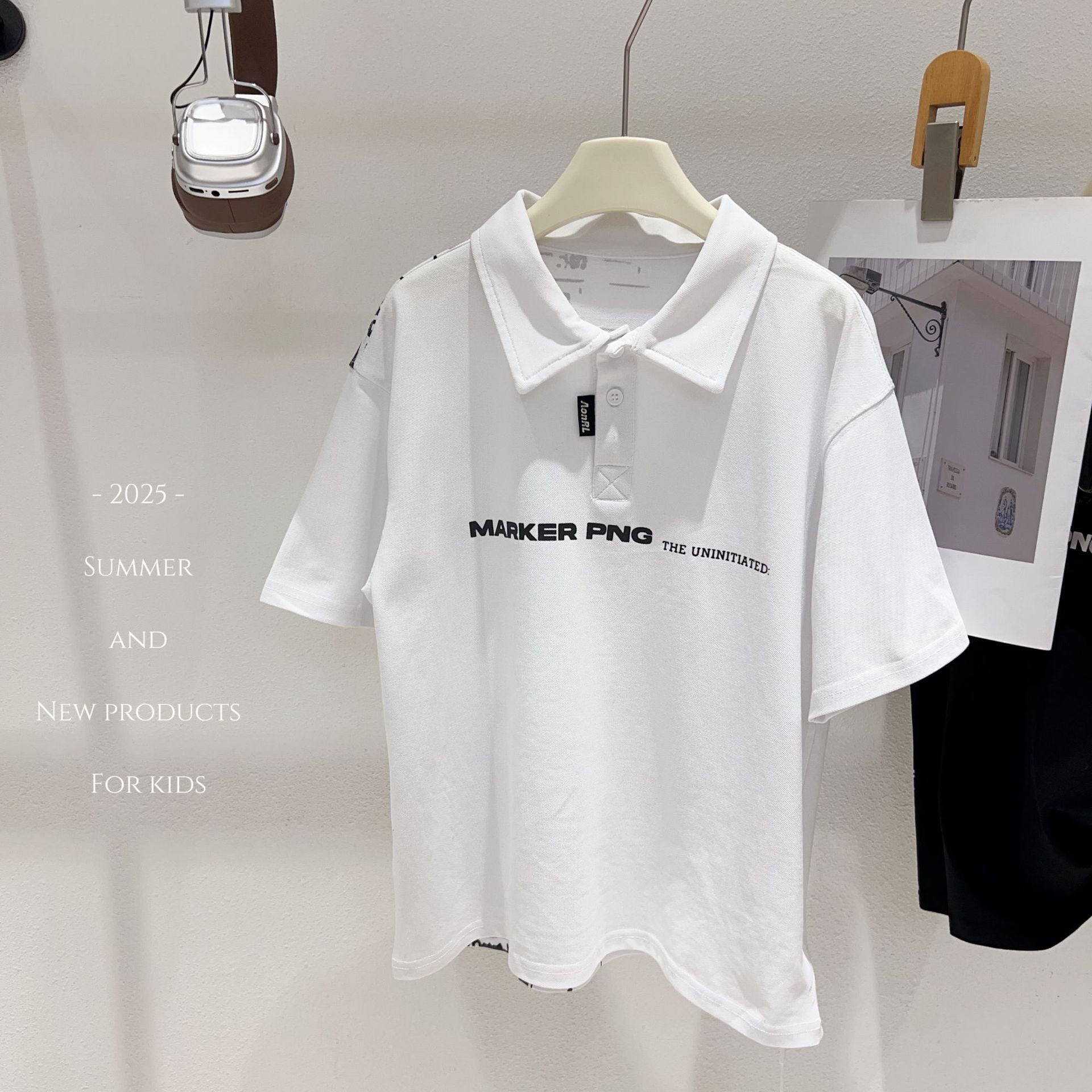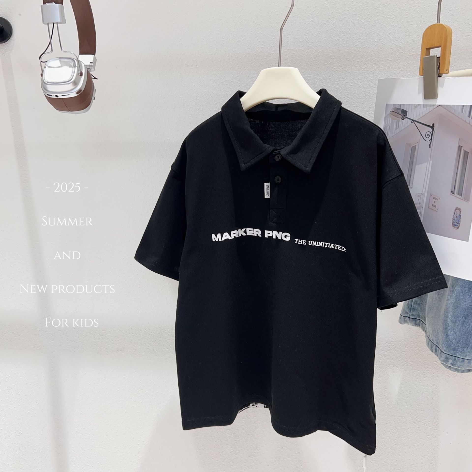 어린이 티셔츠 2025 큰 어린이 여름 새 880259 소년 소녀 편지 POLO 칼라 한국 반팔 티셔츠스토어 가기