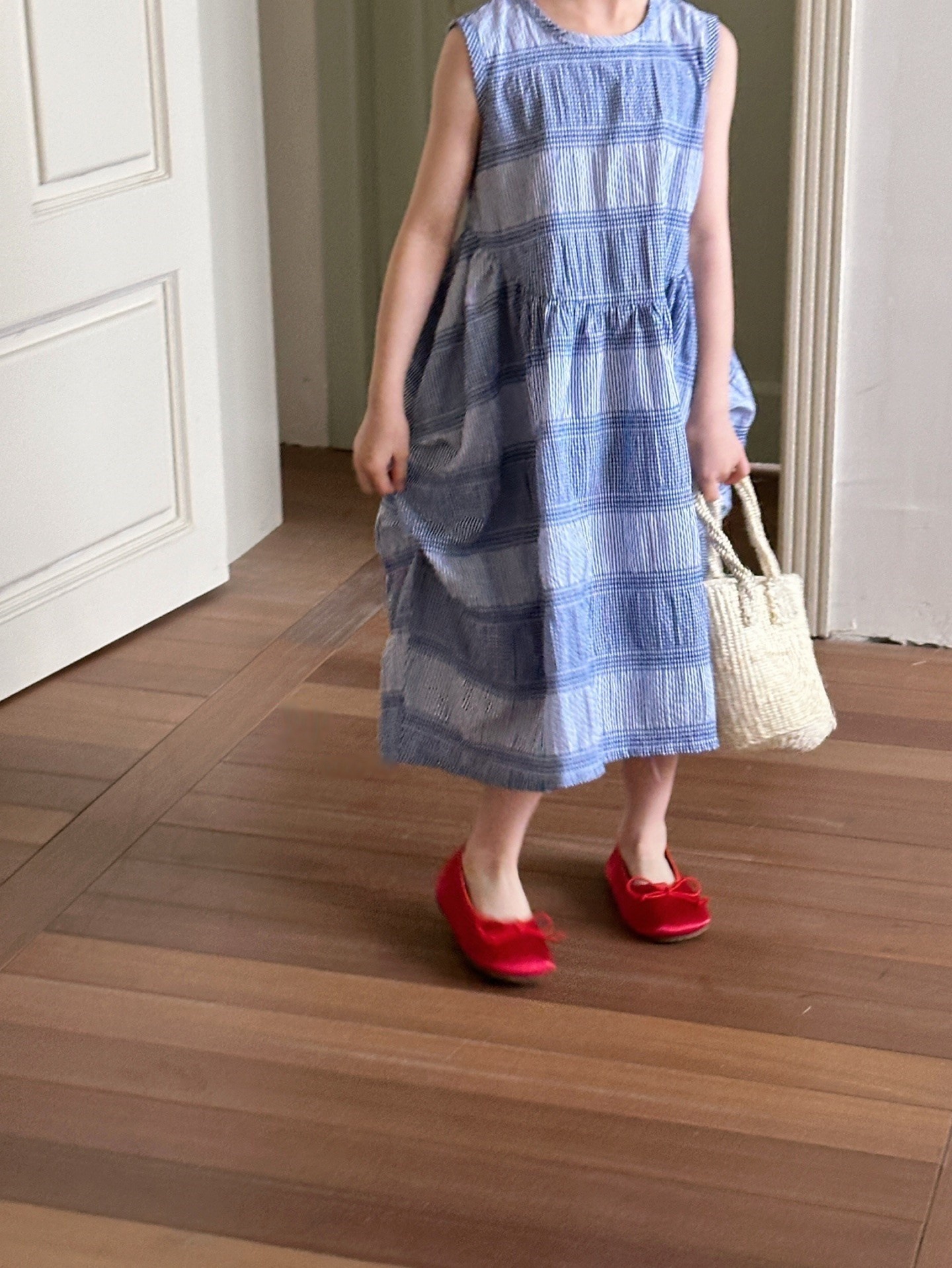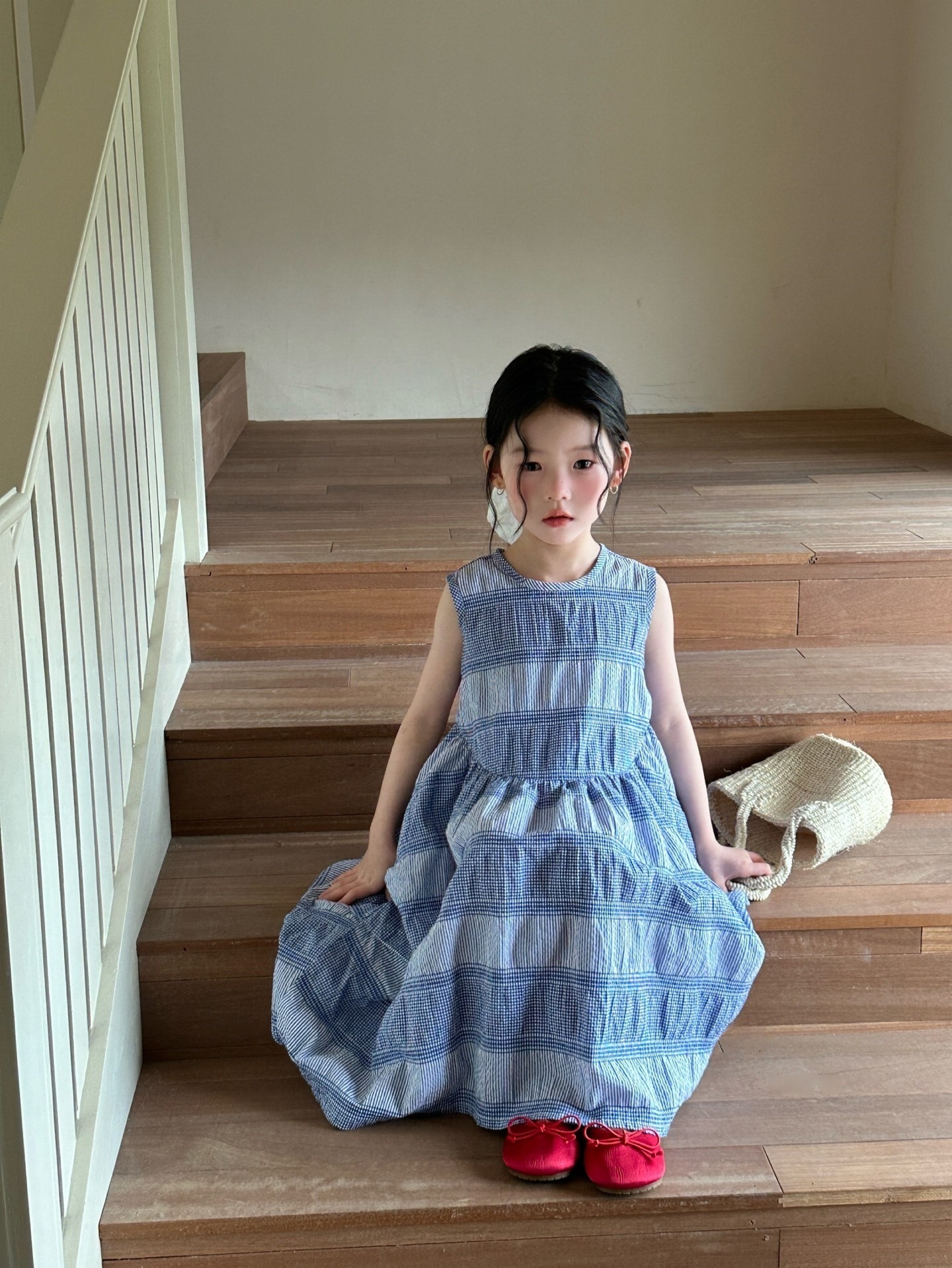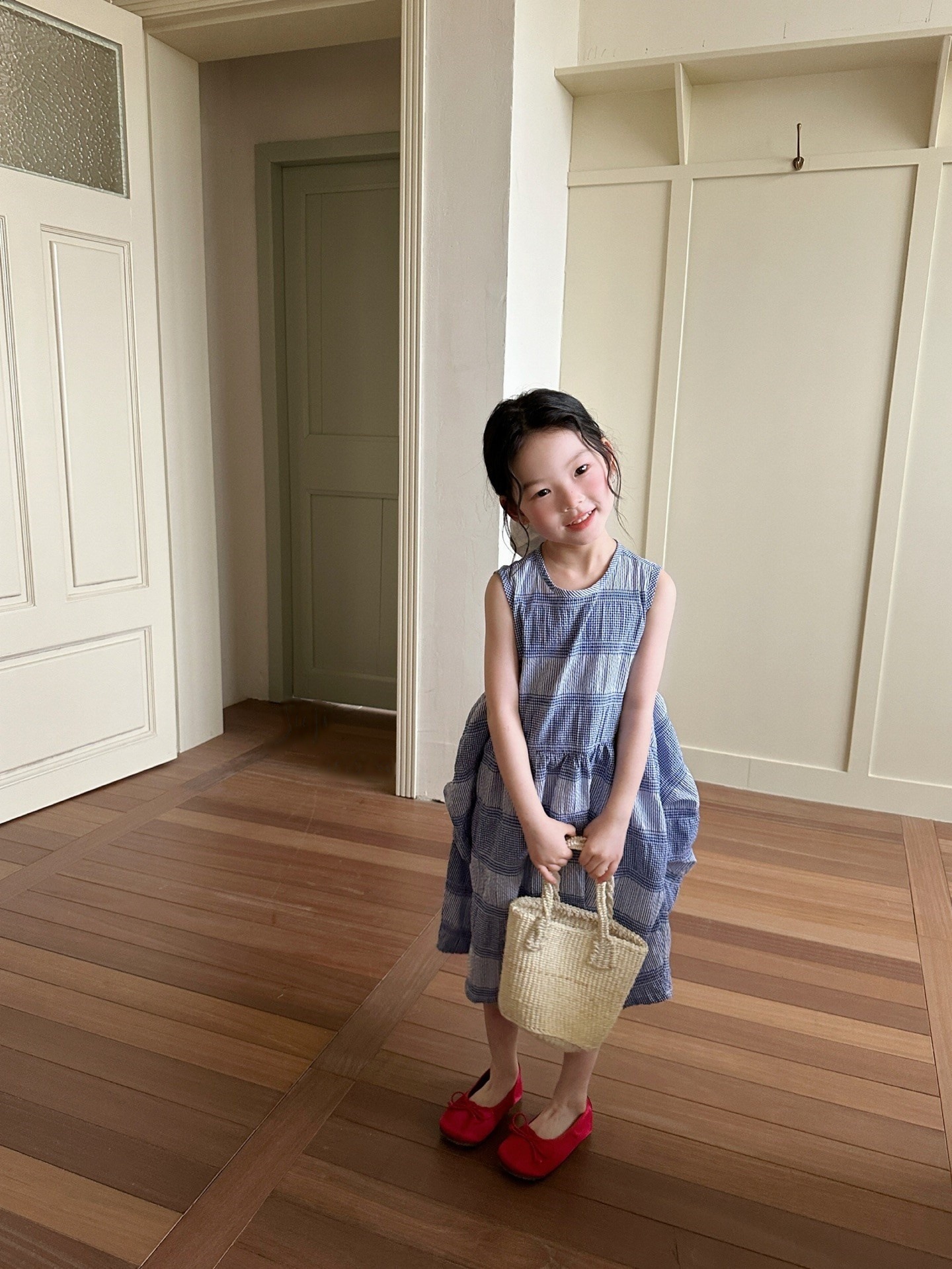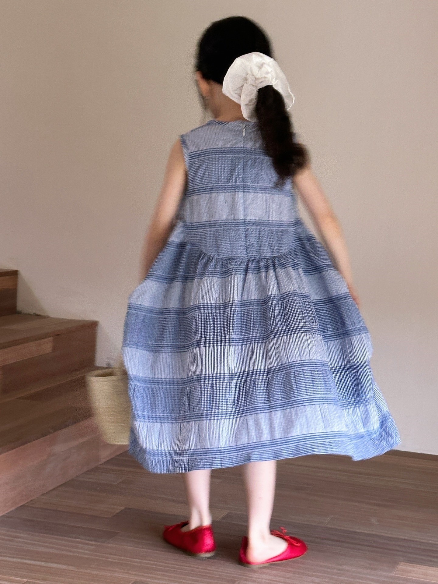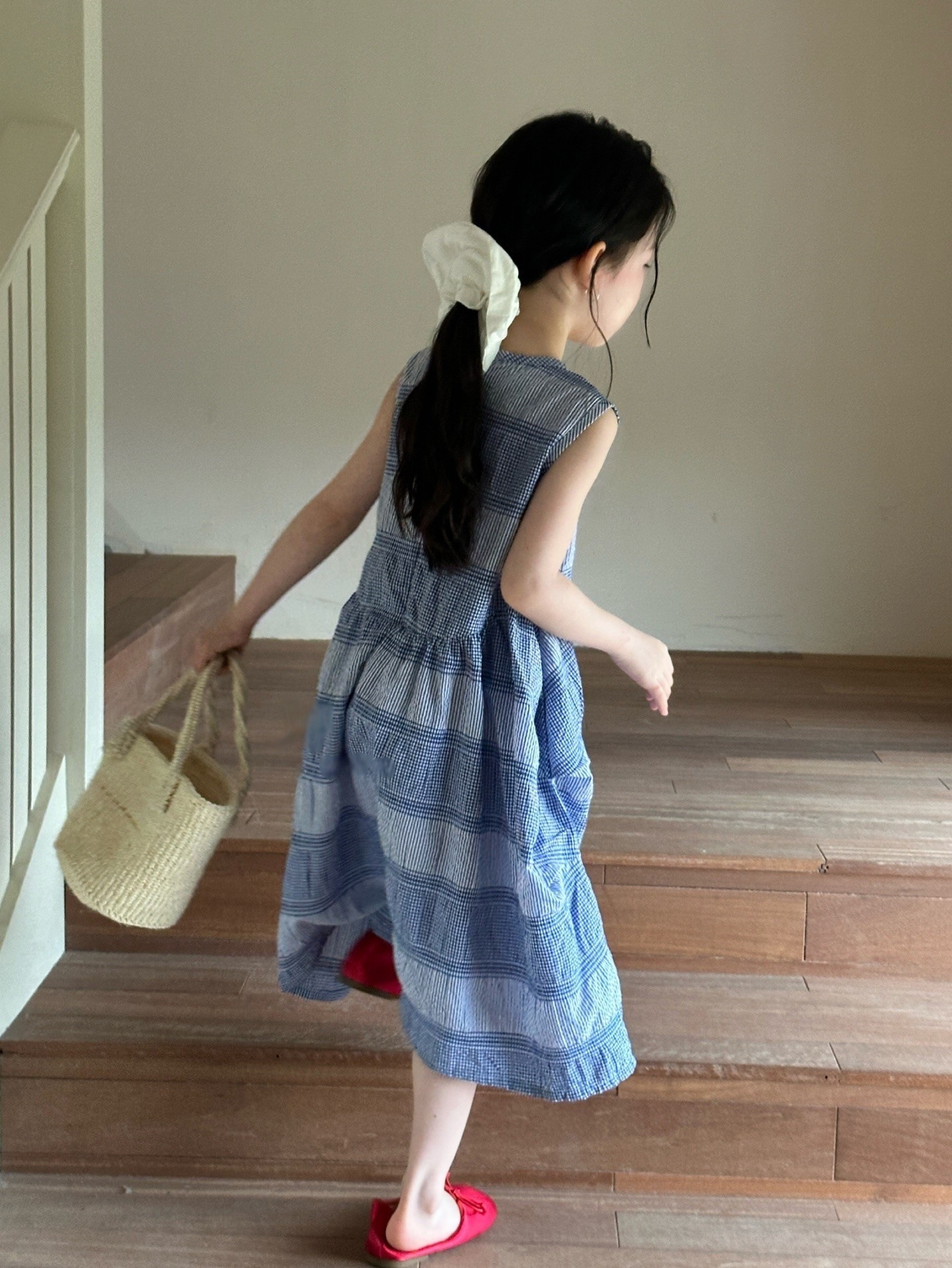 소녀 한국 캐주얼 격자 무늬 원피스 한국 아동복 여름용 25 아기 소녀를위한 세련된 서양식 루즈 조끼 원피스스토어 가기