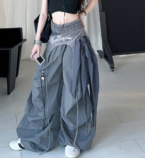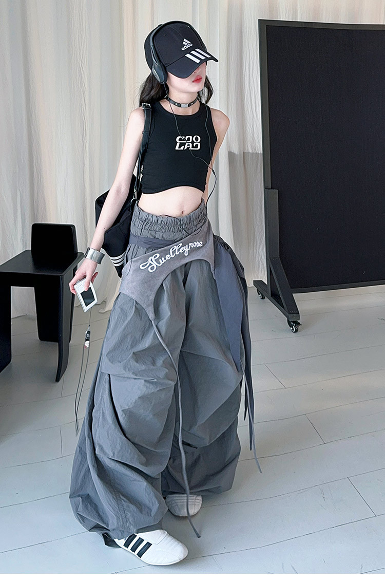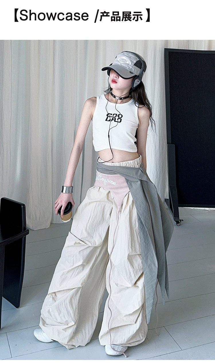 국경 간 소녀 2025 봄과 가을 미국 거리 허리 씰 와이드 레그 마체테 바지 디자인 센스 스포츠 캐주얼 트렌디 팬츠스토어 가기