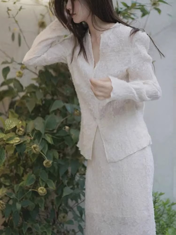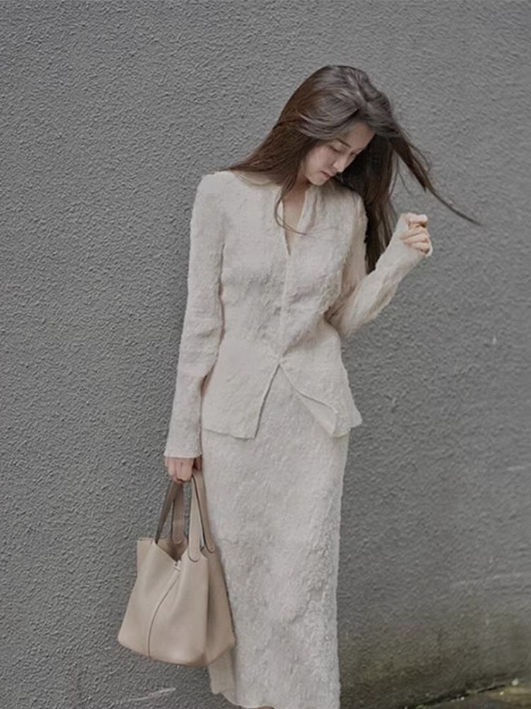 여성을위한 초봄 새로운 유제품 착용 세트 하이 엔드 패션 샤넬 화이트 레이스 탑 스커트 투피스 세트