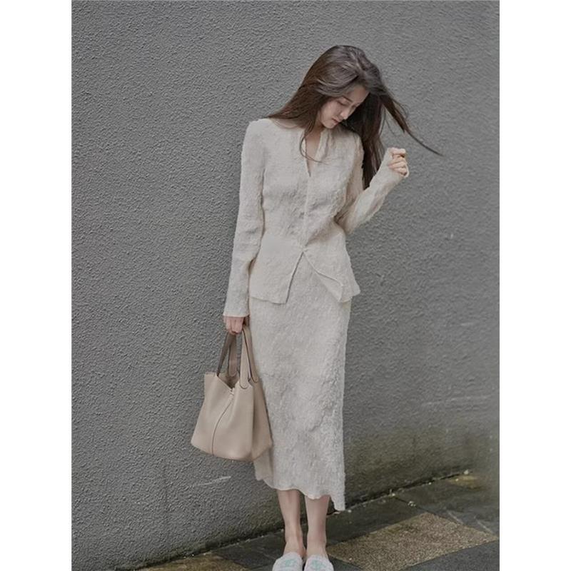 여성을위한 초봄 새로운 유제품 착용 세트 하이 엔드 패션 샤넬 화이트 레이스 탑 스커트 투피스 세트스토어 가기