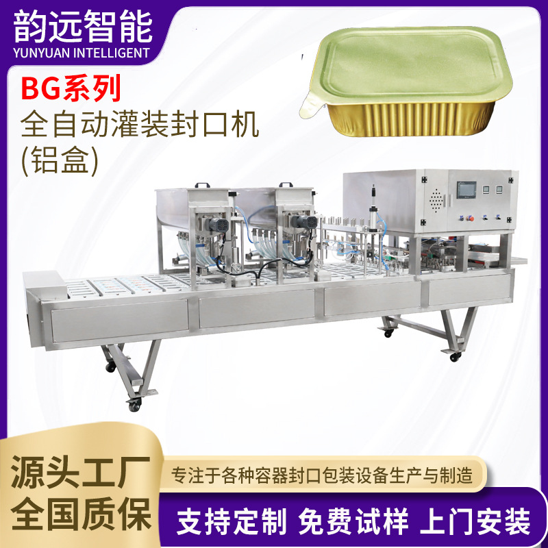 제조업체 맞춤형 완전 자동 알루미늄 호일 상자 그릇 조리된 야채 충전 및 밀봉 기계 가재 두리안 상자 연속 포장 기계