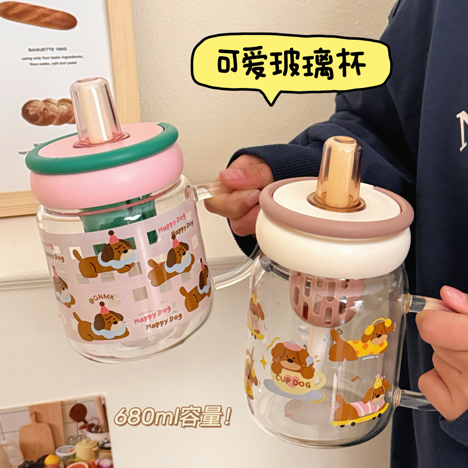 손잡이가 달린 고급스러운 차와 물 분리 유리 컵, 대용량 사무실 밀짚 커피 컵, 가정용 물컵