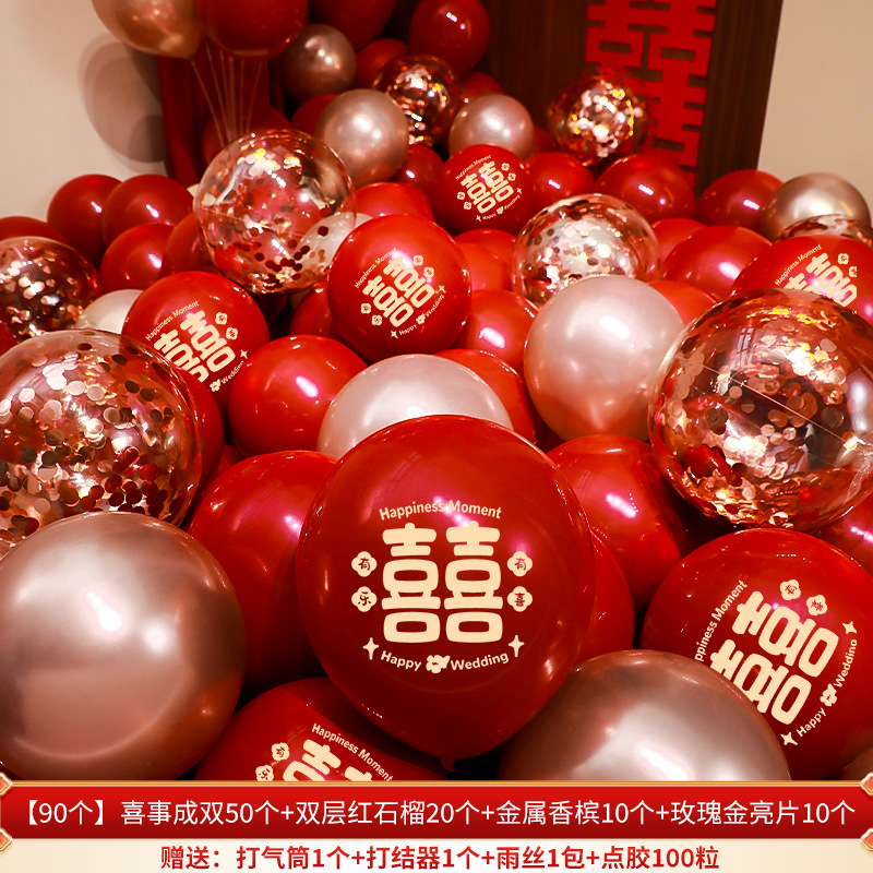 웨딩 풍선 빨간색 여성의 결혼식 방 침실 장식 남성의 약혼 장면 레이아웃 세트 웨딩 용품스토어 가기