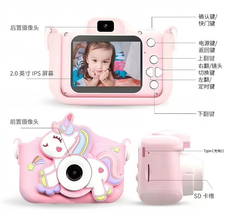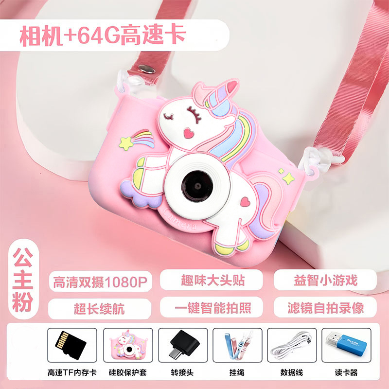 • X15 HD 듀얼 카메라-핑크 유니콘+32G 메모리 카드+카드 리더기+어댑터