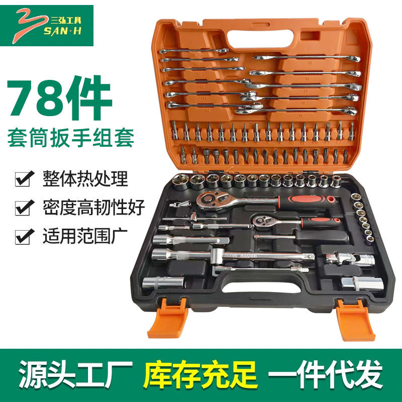 재고 도매 자동차 수리 도구 78 소켓 렌치 조합 24 치아 빠른 래칫 큰 플라이 육각형 소켓 세트스토어 가기