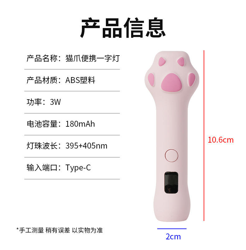 휴대용 고양이 발톱 매니큐어 램프, 소형 휴대용 배터리 저장 미니 광선 요법 램프, 네일 베이킹 램프, 매니큐어 광선 요법 램프