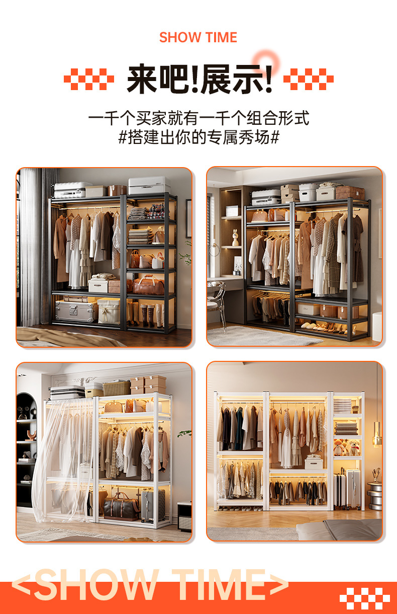 선반 옷장 가정용 개방형 옷걸이 다층 수납 선반 간단한 옷걸이 실내 바닥 옷장스토어 가기