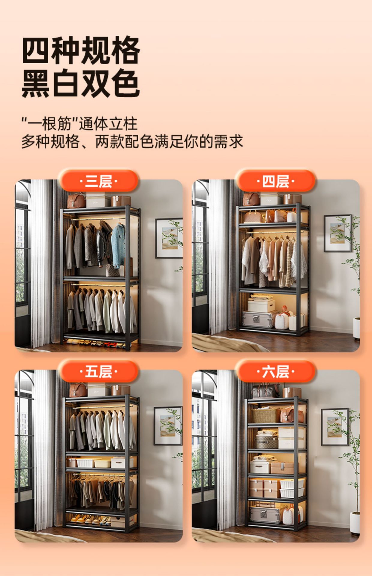 선반 옷장 가정용 개방형 옷걸이 다층 수납 선반 간단한 옷걸이 실내 바닥 옷장