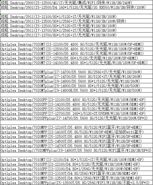 • Optiplex7020MTplus(I9-14900/D5 5600 8G*1/512G/500W