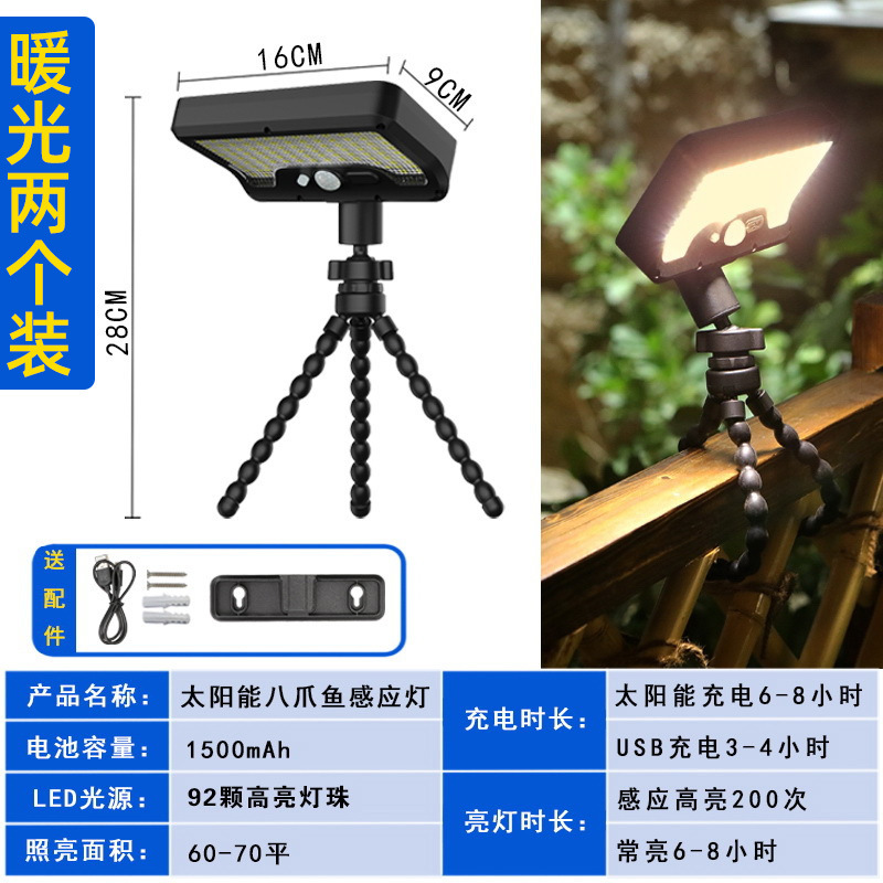 맞춤형 국경 간 새로운 문어 태양 광 클립 램프 안뜰 야외 홈 센서 벽 램프 방수 조명