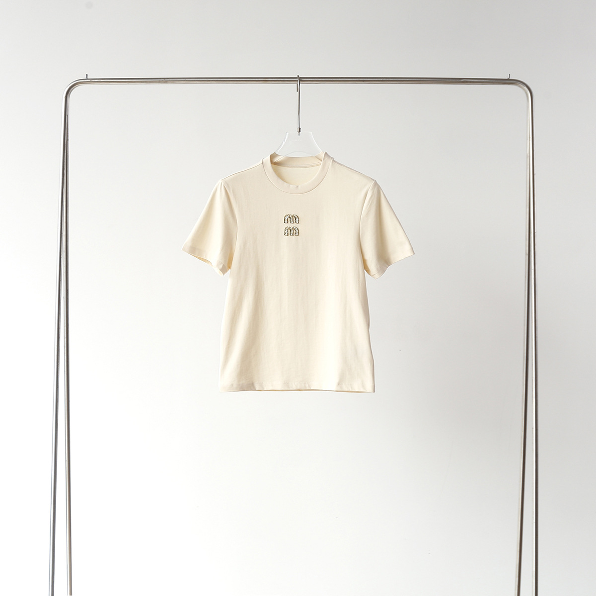 MM 중공업 네일 시퀀스 중립 색상 라운드 넥 반팔 티셔츠 여성의 2025 여름 느슨한 중간 길이 간단한 트렌디 브랜드 T스토어 가기
