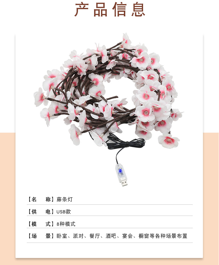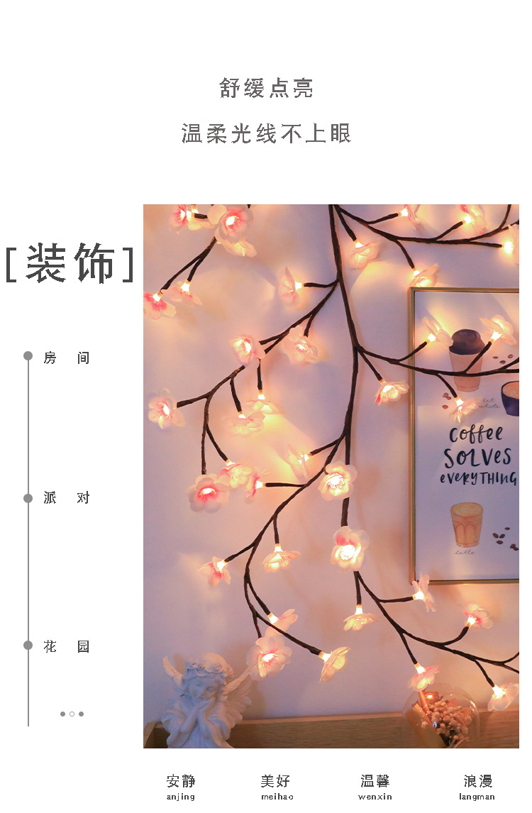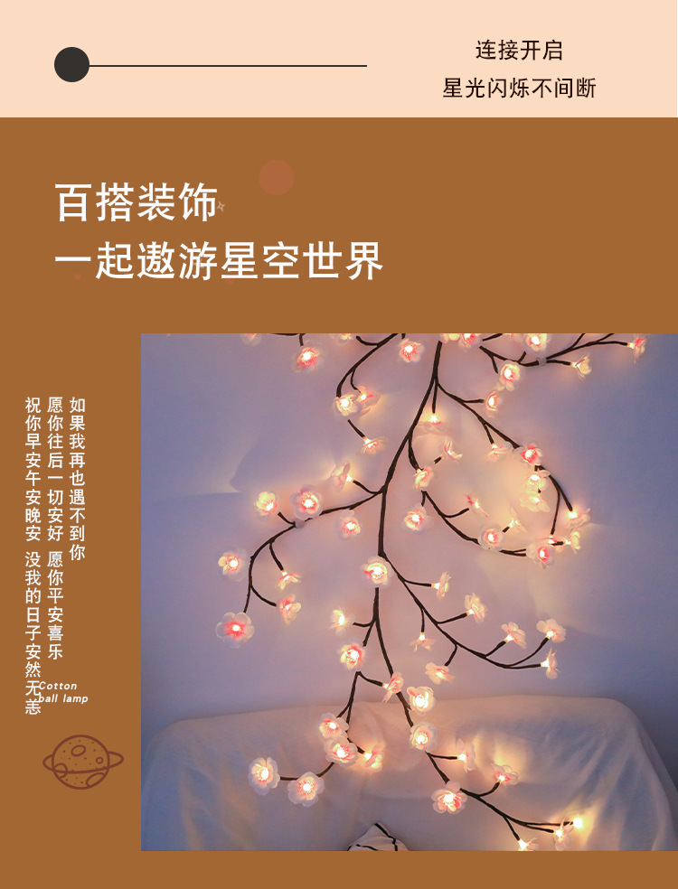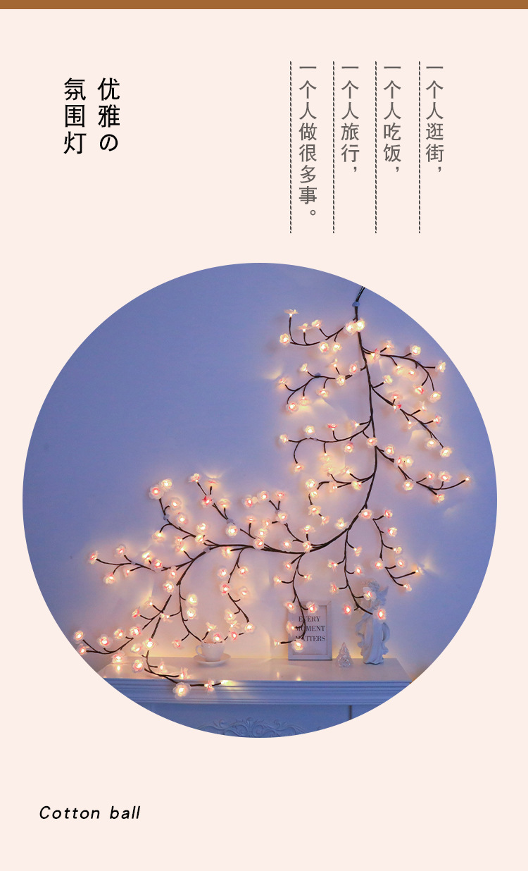 새로운 크로스 테두리 LED 지점 라이트 등나무 라이트 벚꽃 분위기 인테리어 장식 스타일 라이트 커블 앰비언스 라이트