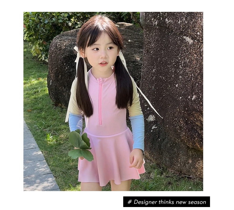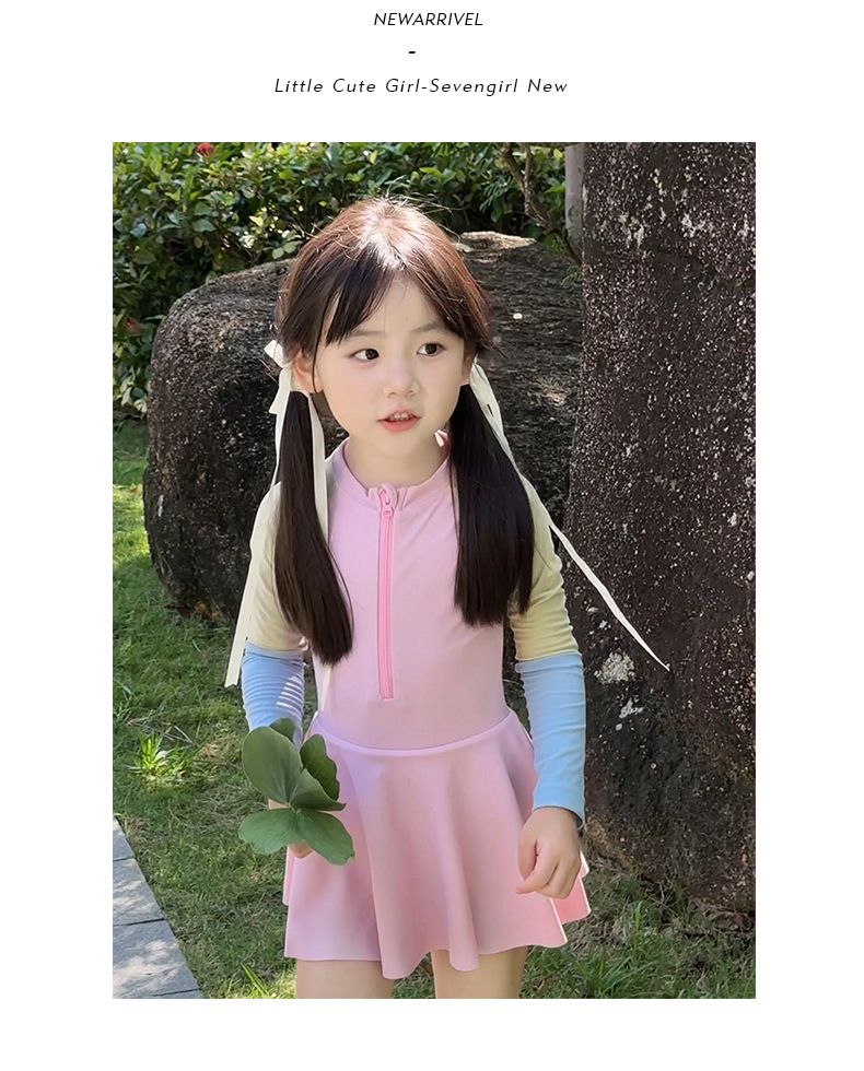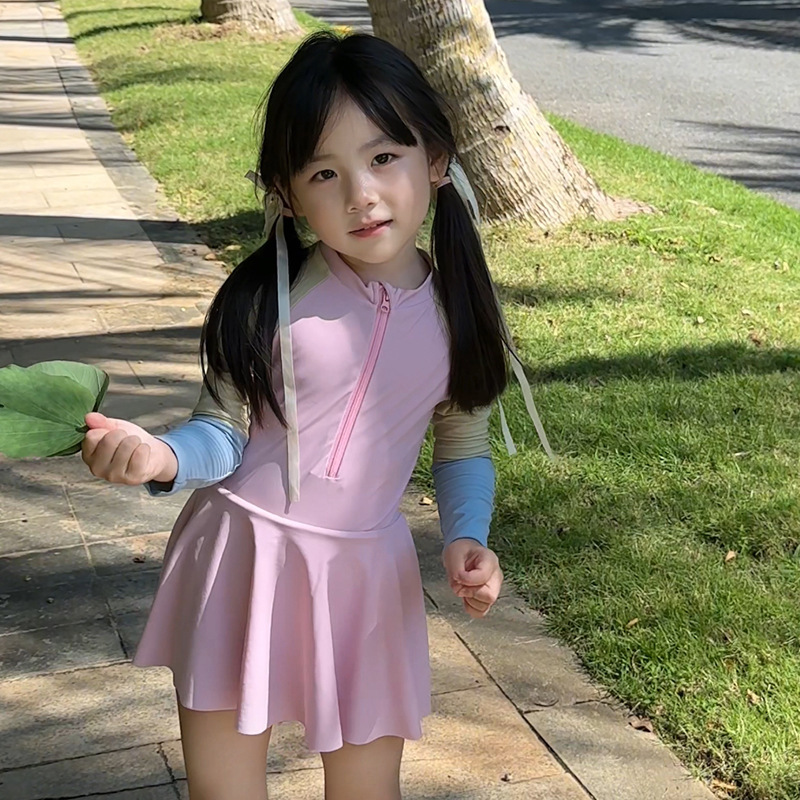 여름 새로운 한국식 2 색 바느질 어린이 수영복 소녀 서양식 귀여운 아기 빠른 건조 온천 수영복스토어 가기