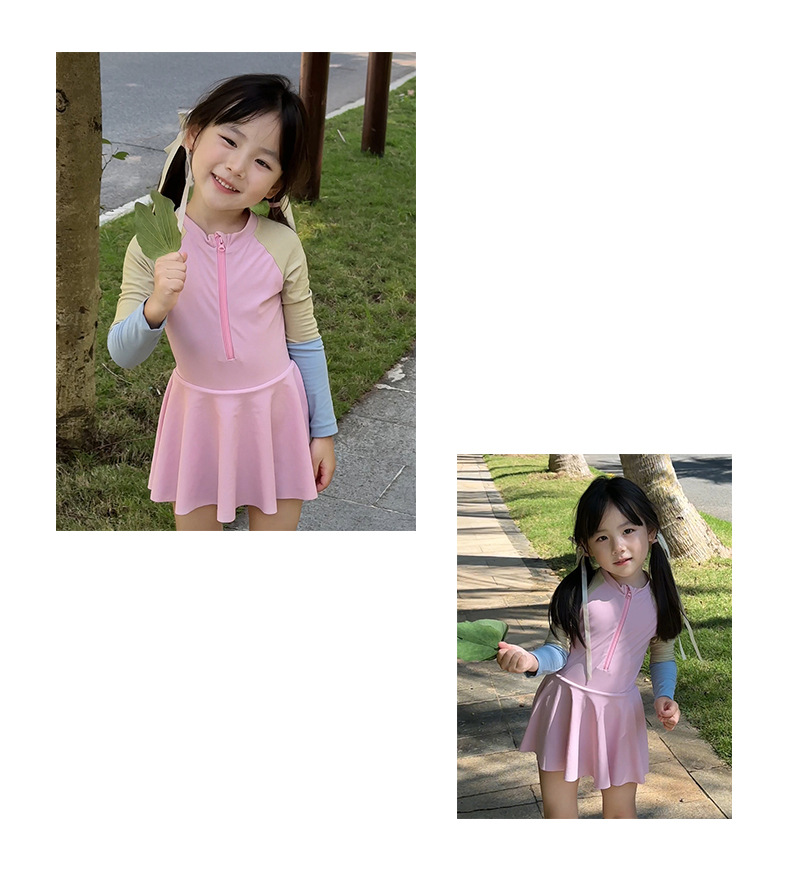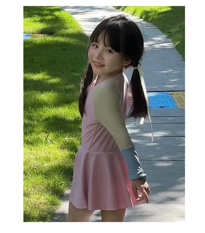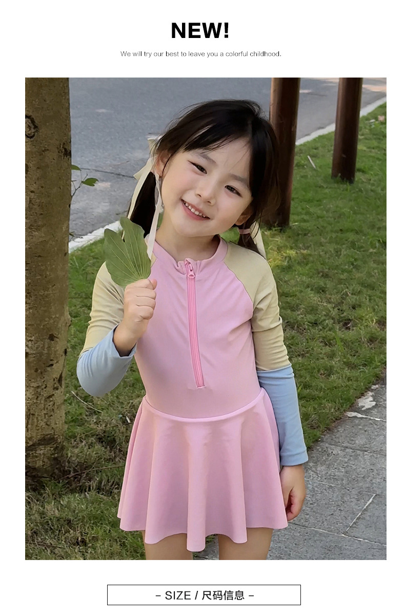 여름 새로운 한국식 2 색 바느질 어린이 수영복 소녀 서양식 귀여운 아기 빠른 건조 온천 수영복