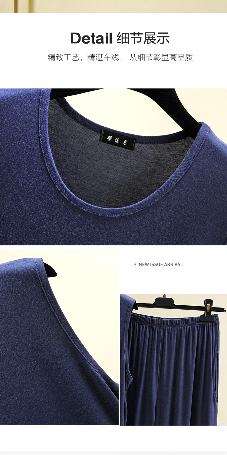 남성용 모달 민소매 홈웨어 슈트 여름 얇은 웨어러블 조끼 반바지 캐주얼 대형 잠옷스토어 가기