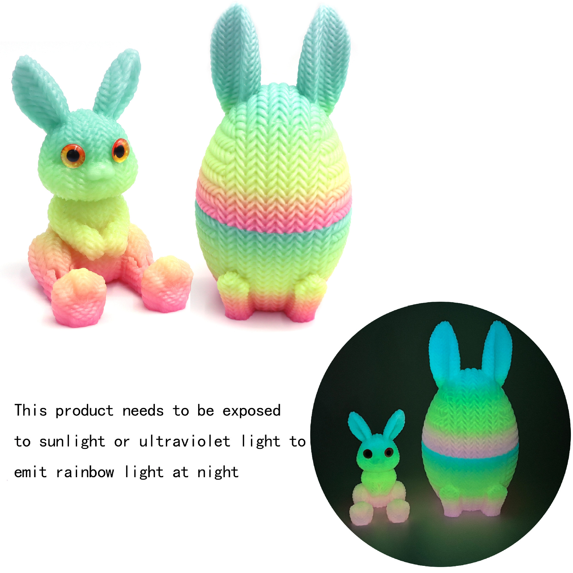 • 봉제 토끼 알 + 봉제 토끼/눈이 없는 버전 [무지개 야광 그라데이션 색상 랜덤]