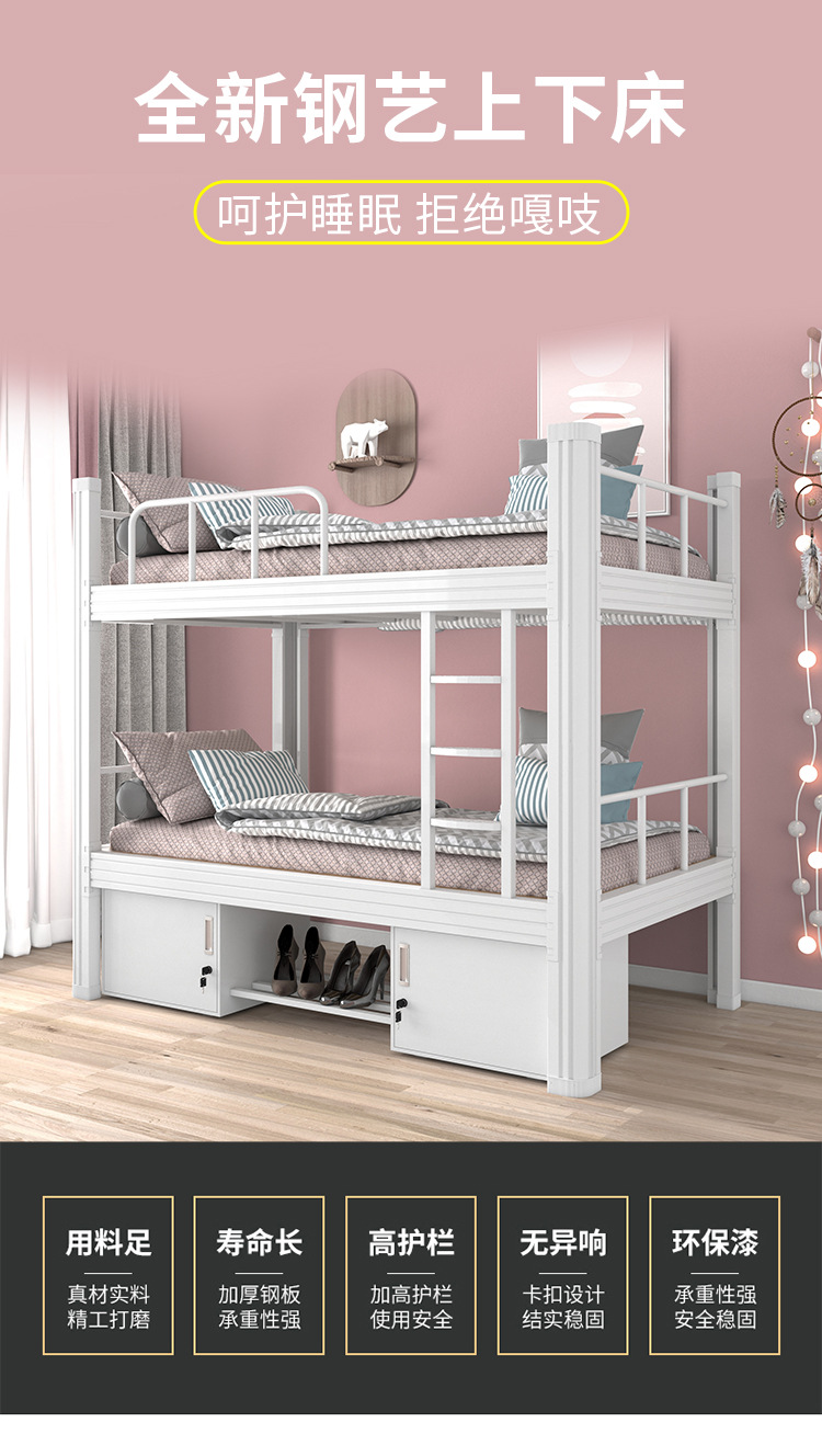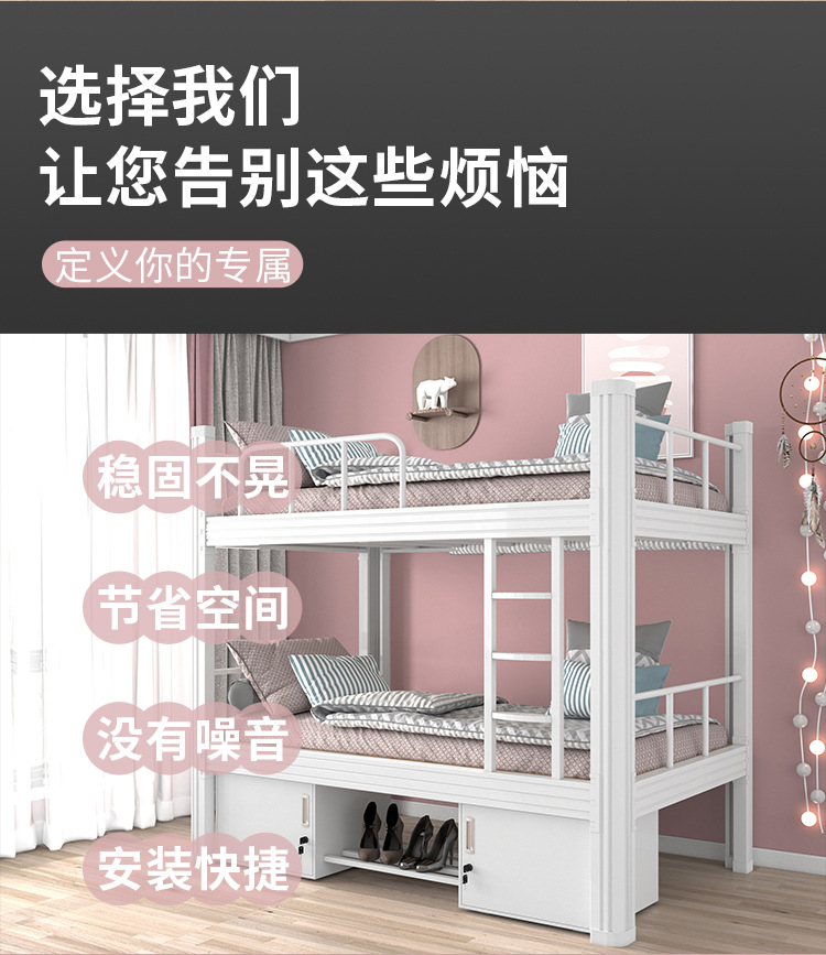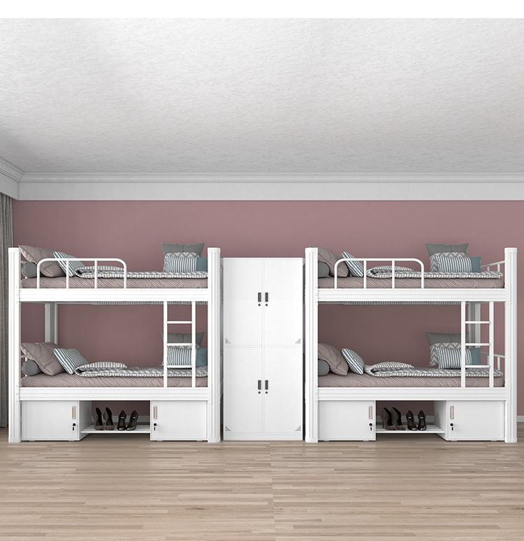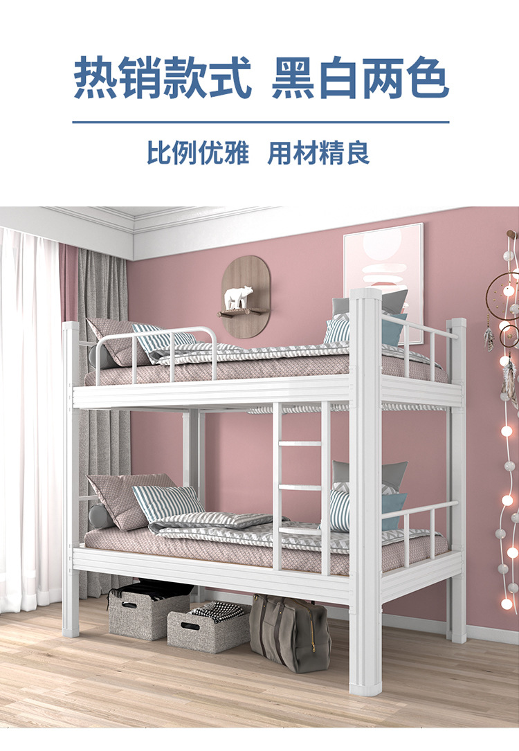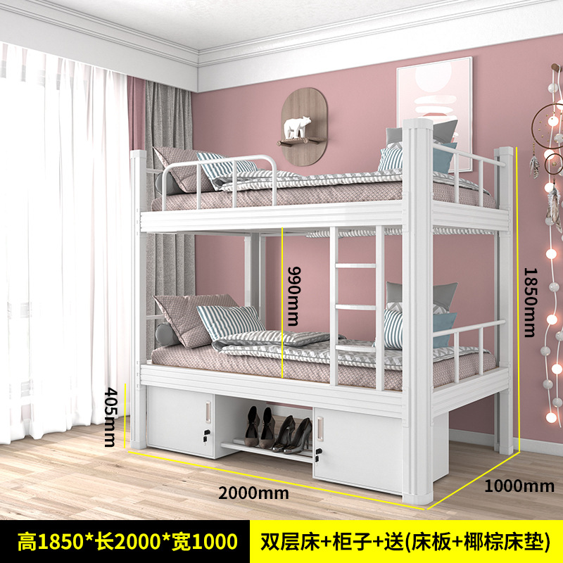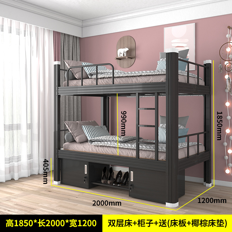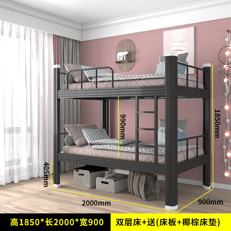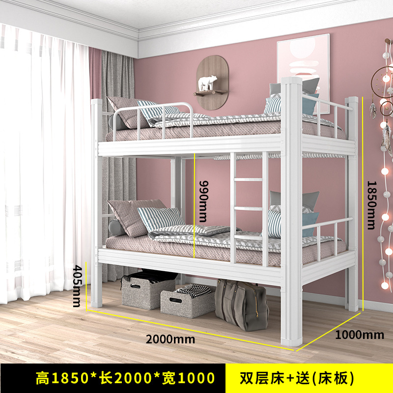 상단 및 하단 이층 철제 침대 이층 침대 직원 학생 기숙사 철 싱글 더블 침실 아파트 높고 낮은 철제 프레임 침대스토어 가기