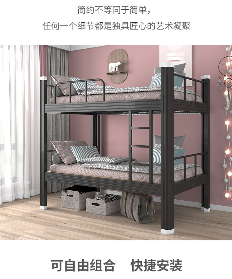 상단 및 하단 이층 철제 침대 이층 침대 직원 학생 기숙사 철 싱글 더블 침실 아파트 높고 낮은 철제 프레임 침대