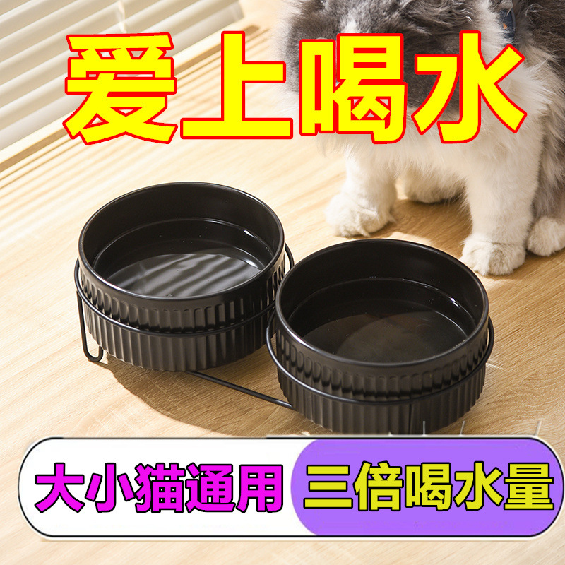 검은 고양이 그릇 세라믹 마시는 그릇 더블 그릇 고양이 밥 그릇 넘어짐 방지 애완 동물 그릇 보호 경추 식품 그릇 고양이 먹이 그릇스토어 가기